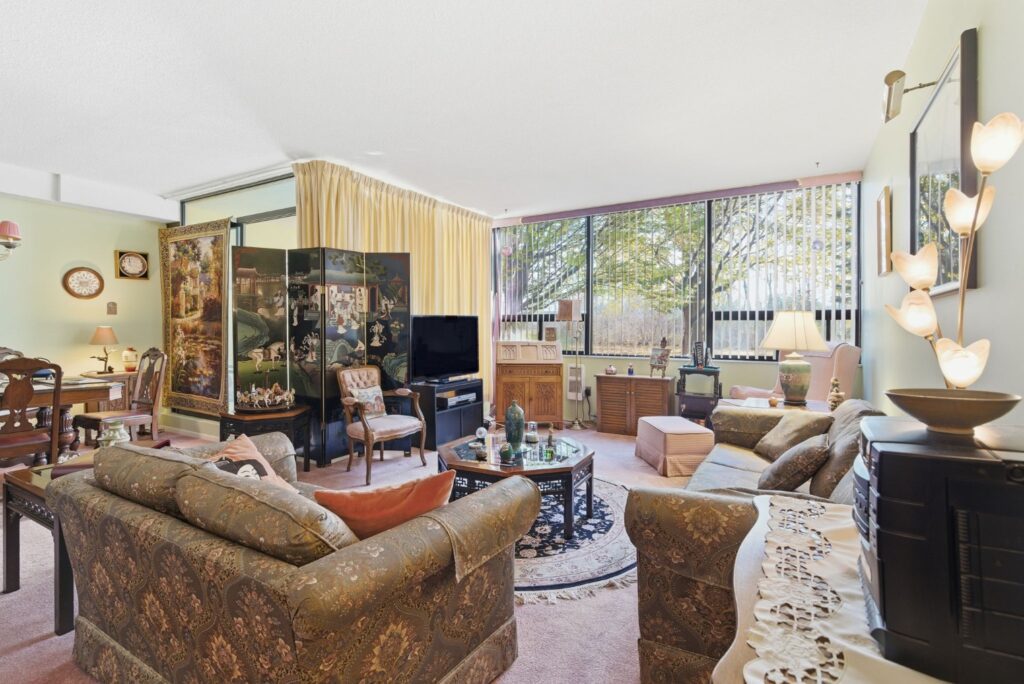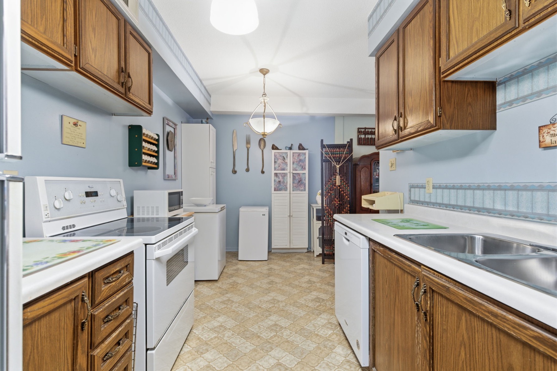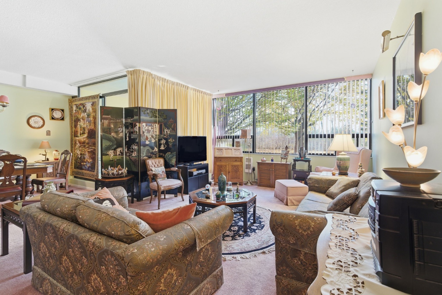 Enjoy peaceful views of the gardens and mature trees from your living space—an ideal backdrop for morning coffee or quiet evenings at home. The unit includes 1 underground parking spot and an owned locker, providing valuable extra storage.