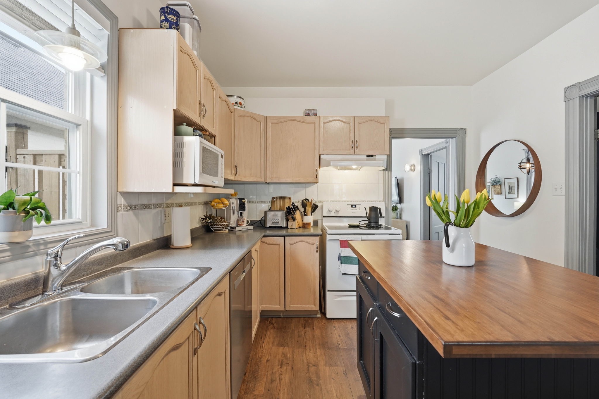 Welcome to this charming bungalow offering comfort and convenience in a great location. The home features 2 bedrooms and 1 full bathroom, along with the added convenience of main floor laundry for easy everyday living. The kitchen is designed with a functional island that provides extra prep space and room for casual dining.