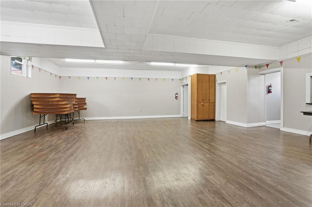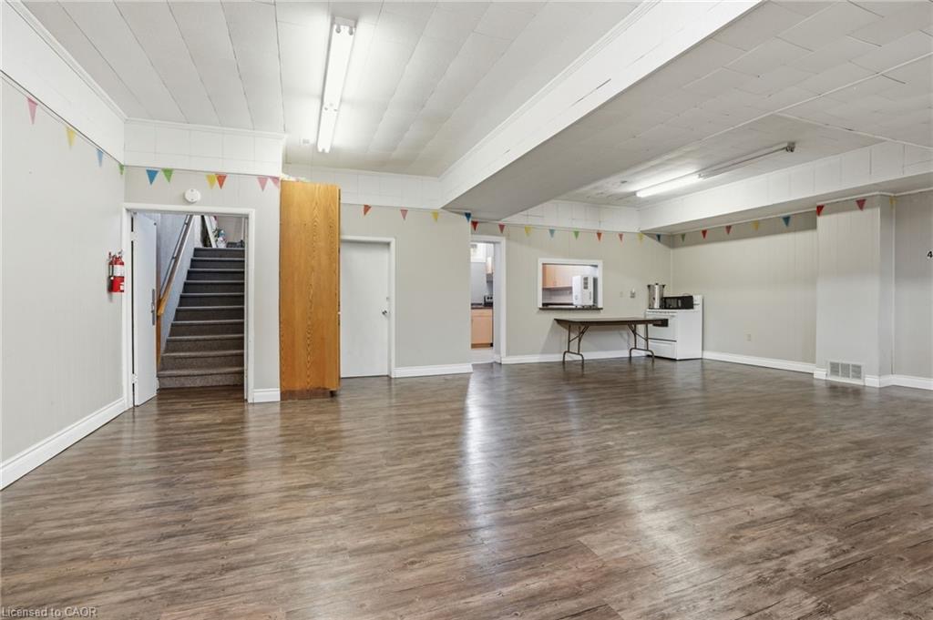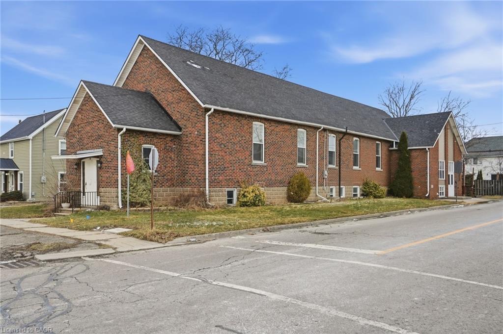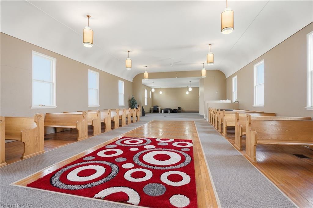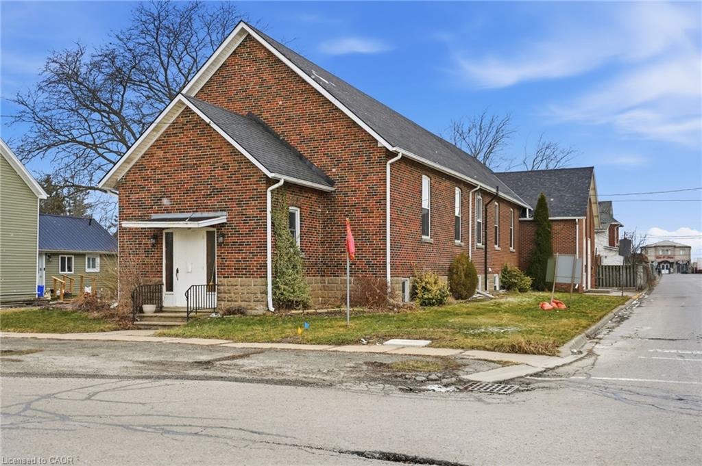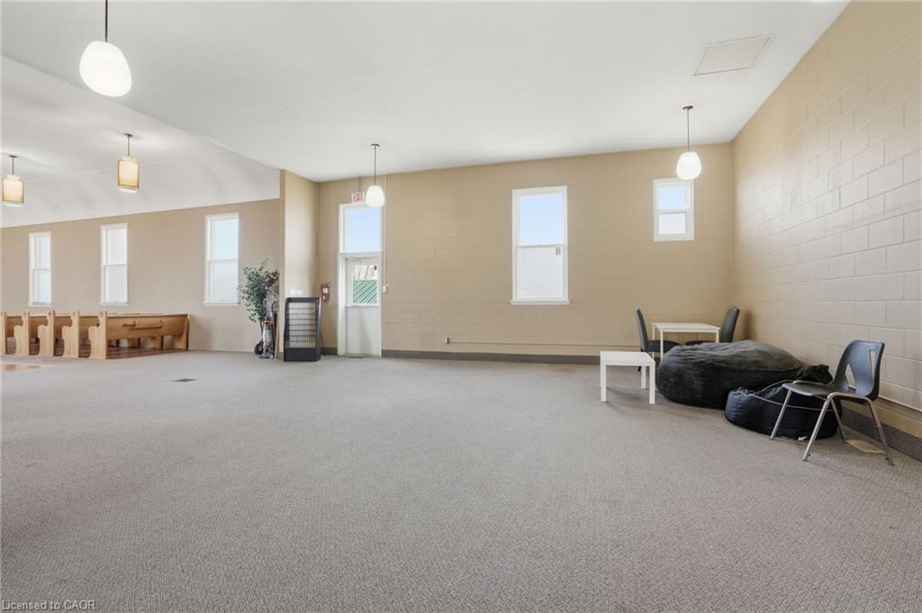Permissible uses allow for a wide variety of commercial applications, including office space, community-oriented uses, and the potential for multiple commercial rental configurations, creating a unique opportunity for both investors and end users. Beautifully maintained, solid concrete block church located in Hagersville’s established northeast neighbourhood, just minutes to parks, arena, and downtown amenities, with convenient access to Hamilton, Brantford, and Highway 403. Set on a 66 x 132 ft serviced lot with some private parking and ample street parking. The bright main level features a spacious sanctuary with hardwood flooring and impressive ceiling height, along with additional meeting space, a boardroom, and an accessible washroom. The finished lower level adds even more flexibility with a fellowship hall, full kitchen, multiple meeting rooms, office space, and additional washrooms. Well maintained, this is a rare and versatile property with excellent potential for a range of future uses.