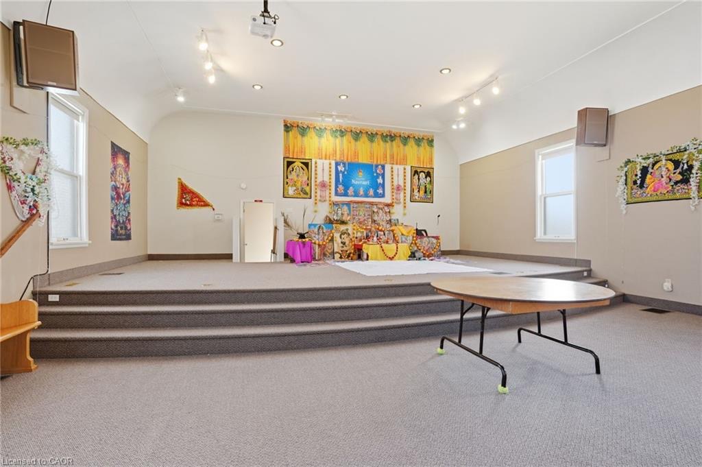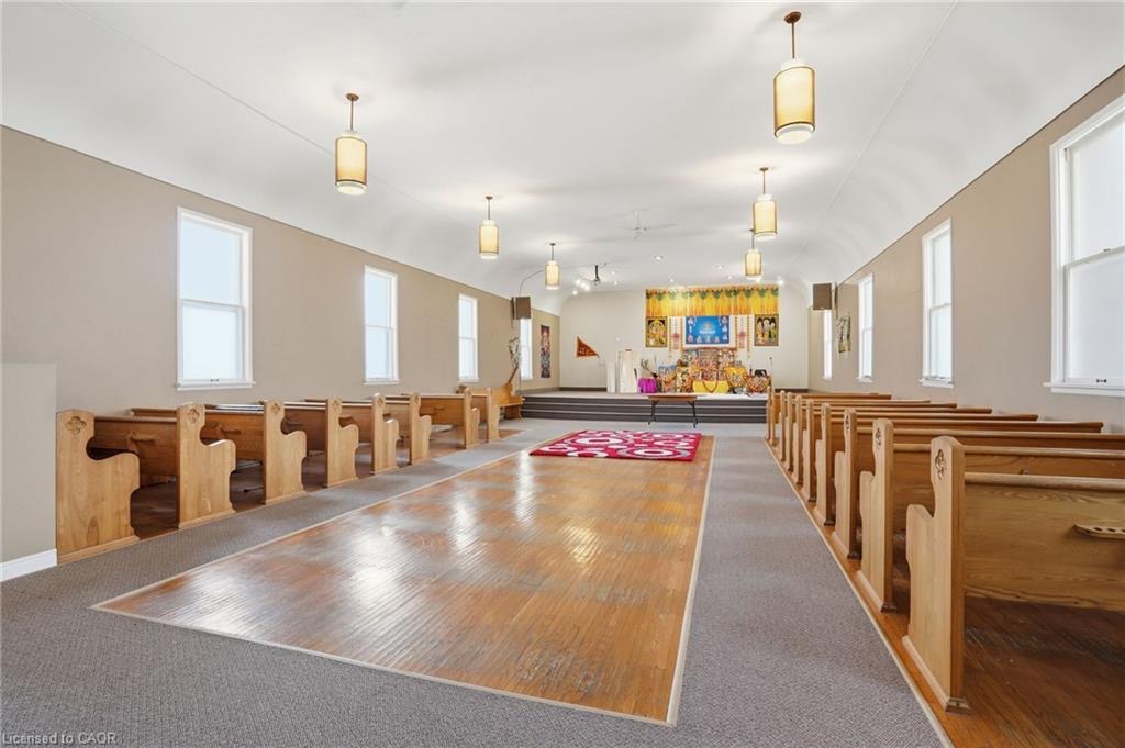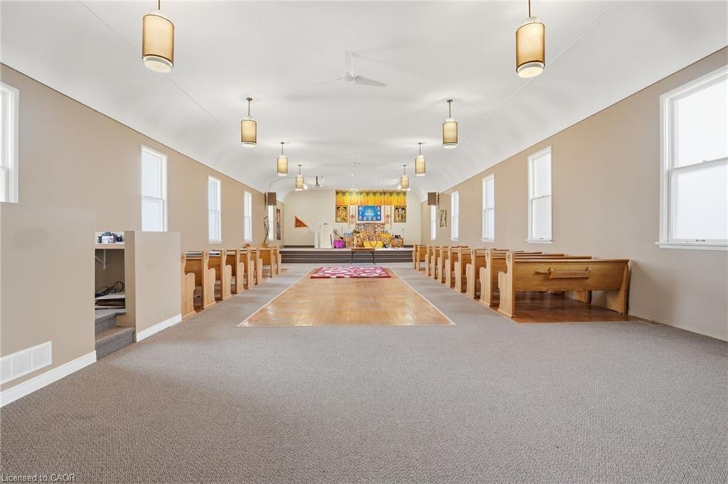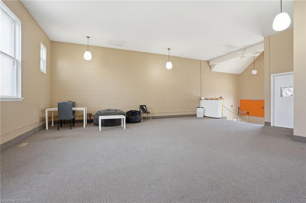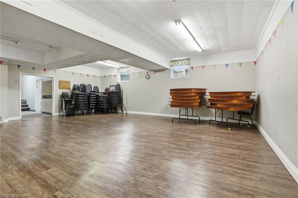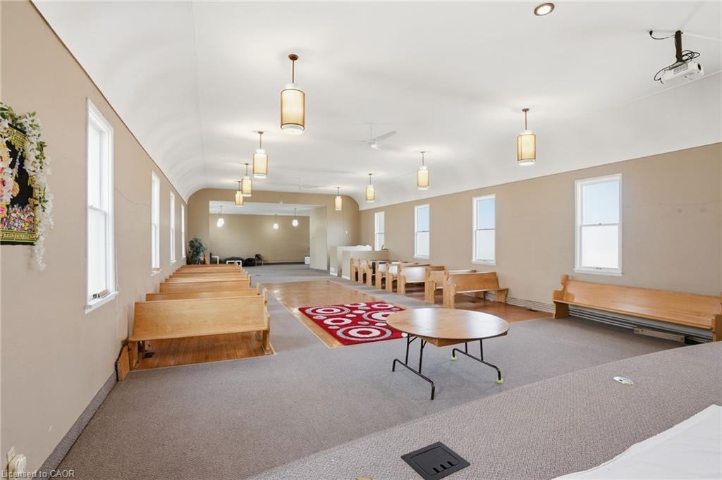Permissible uses allow for a wide variety of commercial applications, including office space, community-oriented uses, and the potential for multiple commercial rental configurations, creating a unique opportunity for both investors and end users. Beautifully maintained, solid concrete block church located in Hagersville’s established northeast neighbourhood, just minutes to parks, arena, and downtown amenities, with convenient access to Hamilton, Brantford, and Highway 403. Set on a 66 x 132 ft serviced lot with some private parking and ample street parking. The bright main level features a spacious sanctuary with hardwood flooring and impressive ceiling height, along with additional meeting space, a boardroom, and an accessible washroom. The finished lower level adds even more flexibility with a fellowship hall, full kitchen, multiple meeting rooms, office space, and additional washrooms. Well maintained, this is a rare and versatile property with excellent potential for a range of future uses.