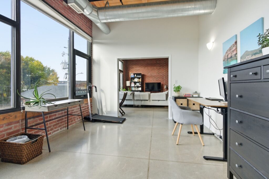 Welcome to Spruce Street Lofts, where industrial heritage meets modern style in the heart of East Galt. This spacious 947 square foot loft blends original character, and boasts a two bedroom, two bathroom set up, with loft vibes accentuated by exposed brick, soaring ceilings, and oversized windows, the contemporary finishes for a truly one-of-a-kind living experience. Steps from the Grand River, the Gaslight District, cafés, shops, trails, and parks, this location offers both urban walkability and natural beauty.Residents enjoy secure entry, a fitness centre, party room, parking, and storage. With its generous floorplan, unique charm, and unbeatable location, this unit is perfect for professionals, downsizers, or investors looking for something special in Cambridge.Historic charm meets Modern comfort, with Downtown convenience. Welcome home to 203- 85 Spruce Street !