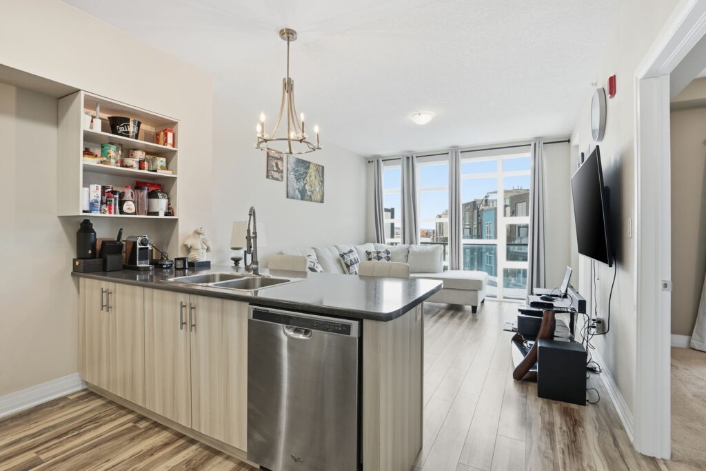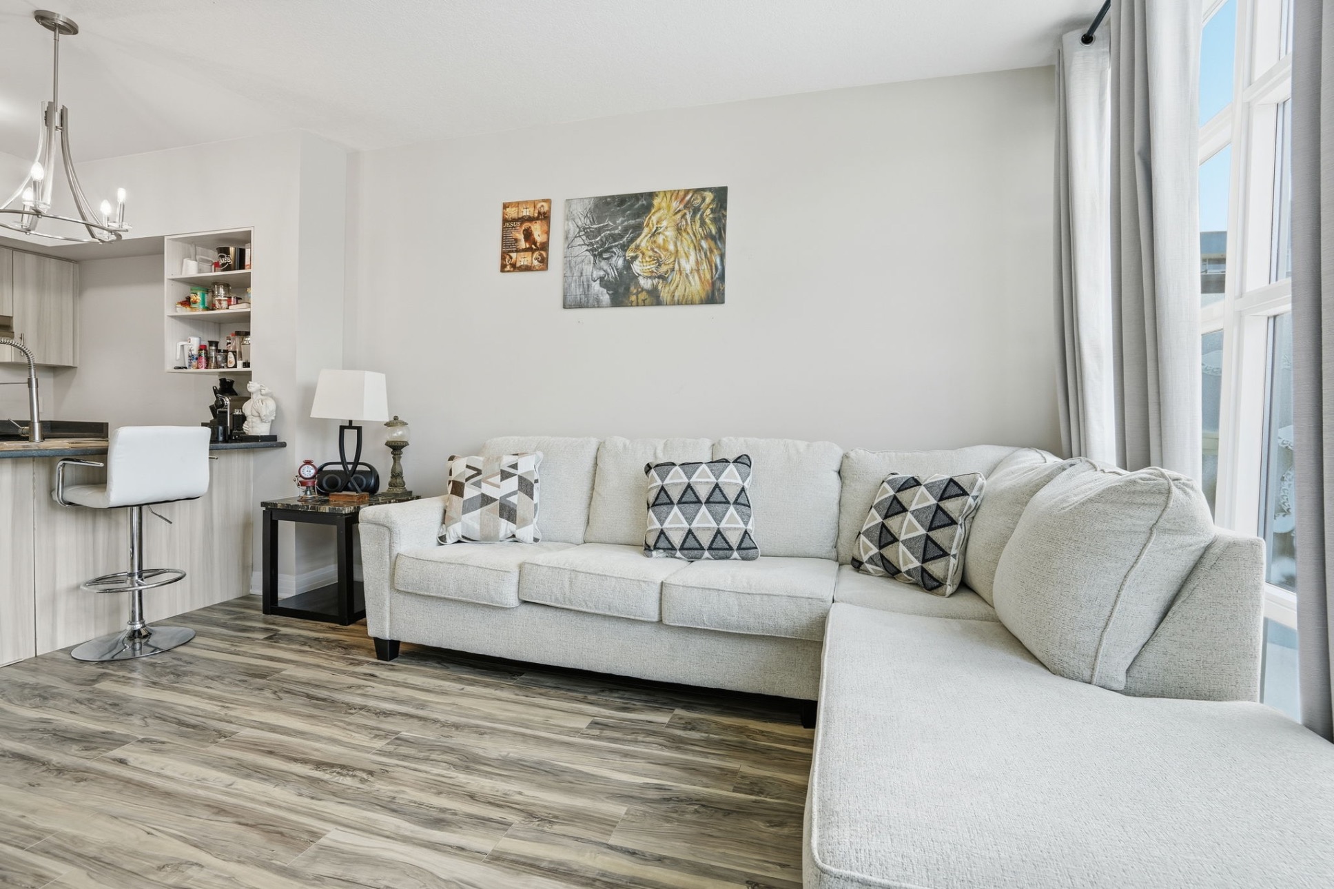 Welcome to AquaBlu, Grimsby’s sought-after waterfront condominium, offering modern living just steps from the shores of Lake Ontario. This beautifully designed 1 bedroom + den, 1 bathroom suite combines style, functionality, and an unbeatable location with over 700 sq ft of living space – ideal for first-time buyers and downsizers a-like. The open-concept layout is thoughtfully designed with contemporary finishes and plenty of natural light. Enjoy the added bonus of a private balcony, perfect for morning coffee or unwinding at the end of the day. The spacious bedroom provides a peaceful retreat, while the versatile den works beautifully as a home office, guest area, or flex space. A stylish 4-piece bathroom and convenient ensuite laundry complete the suite. Located near highway access for commuters with 1 parking spot and 1 locker space.