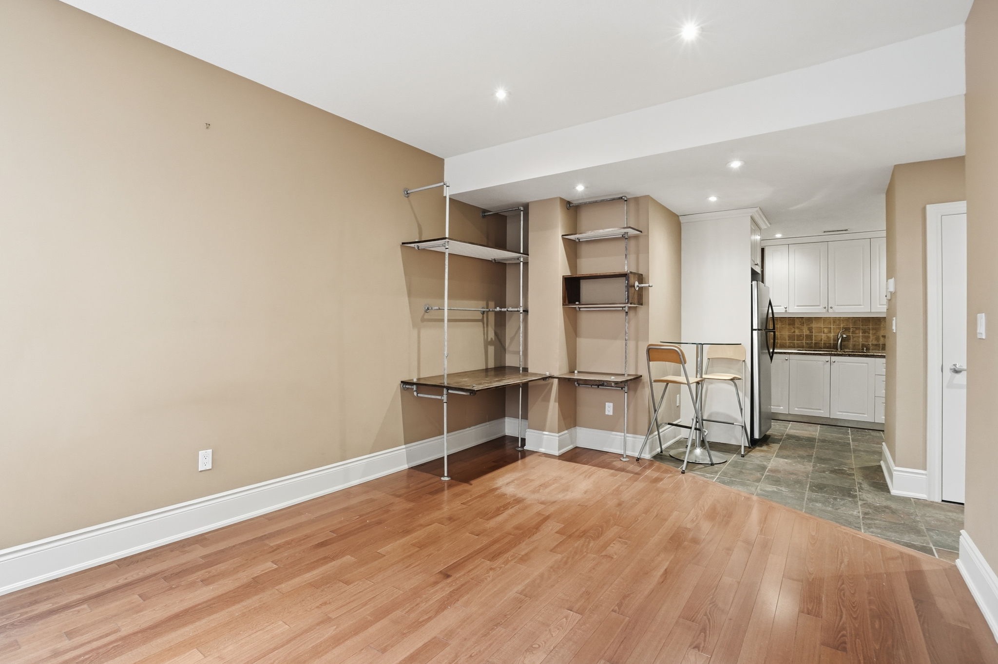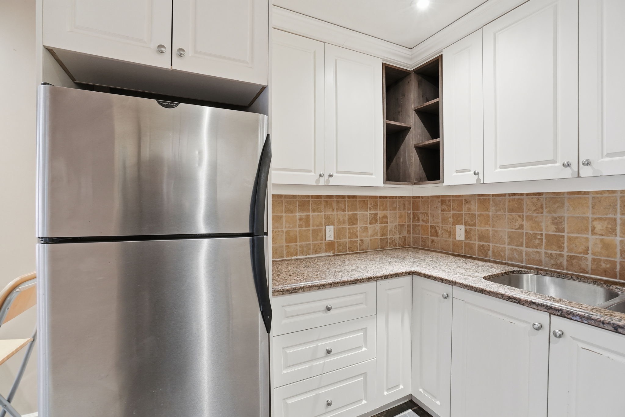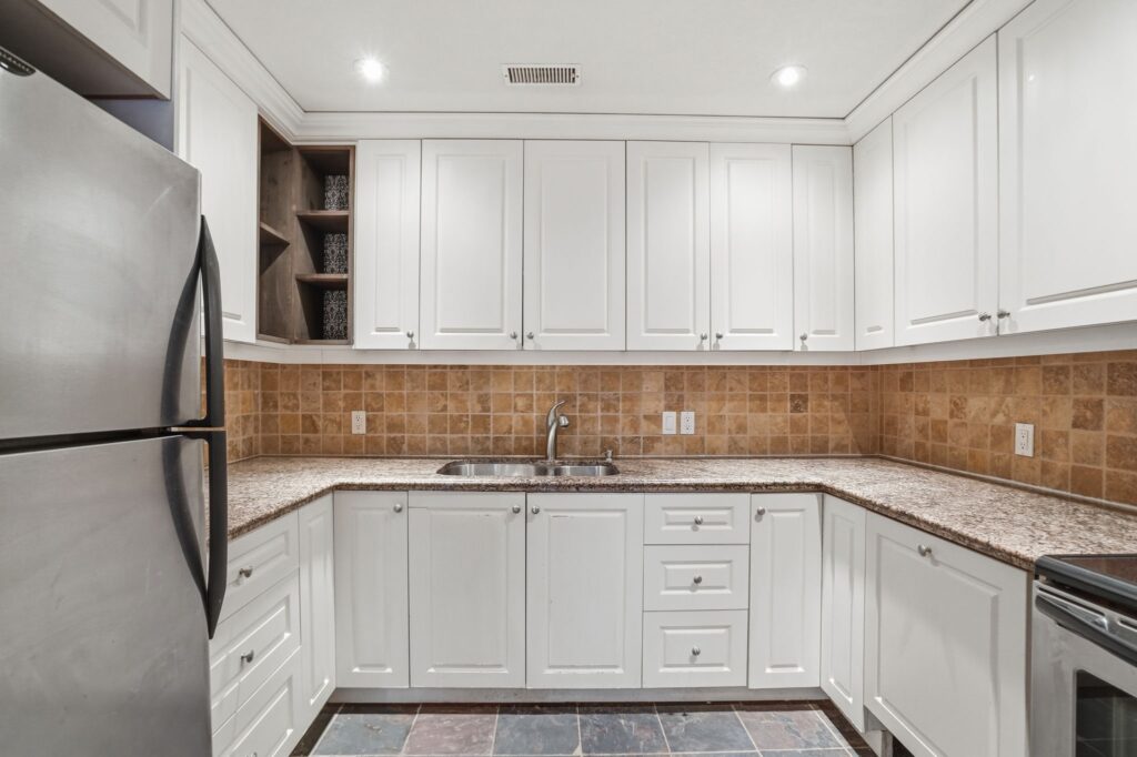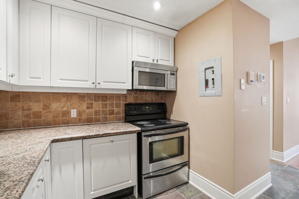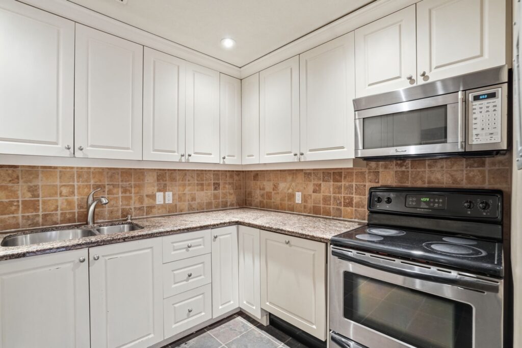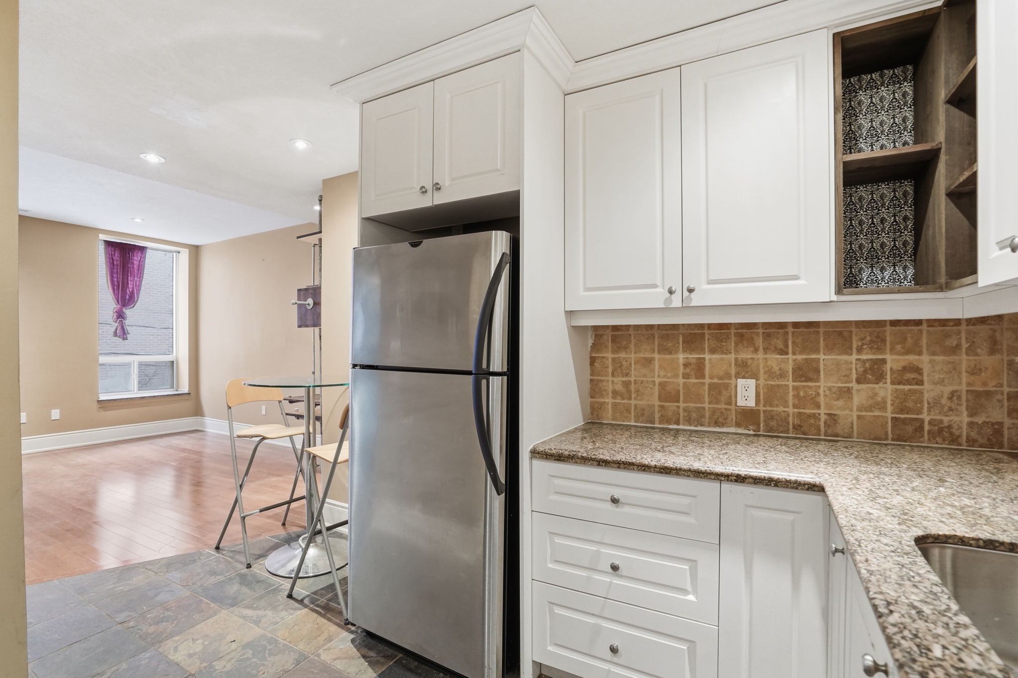 The well-appointed kitchen boasts plenty cupboard space, spacious granite countertops and sleek a stone tile backsplash, making meal prep a pleasure. Down the hall, the generous bedroom offers a peaceful retreat- a place to recharge and escape the buzz of the city.