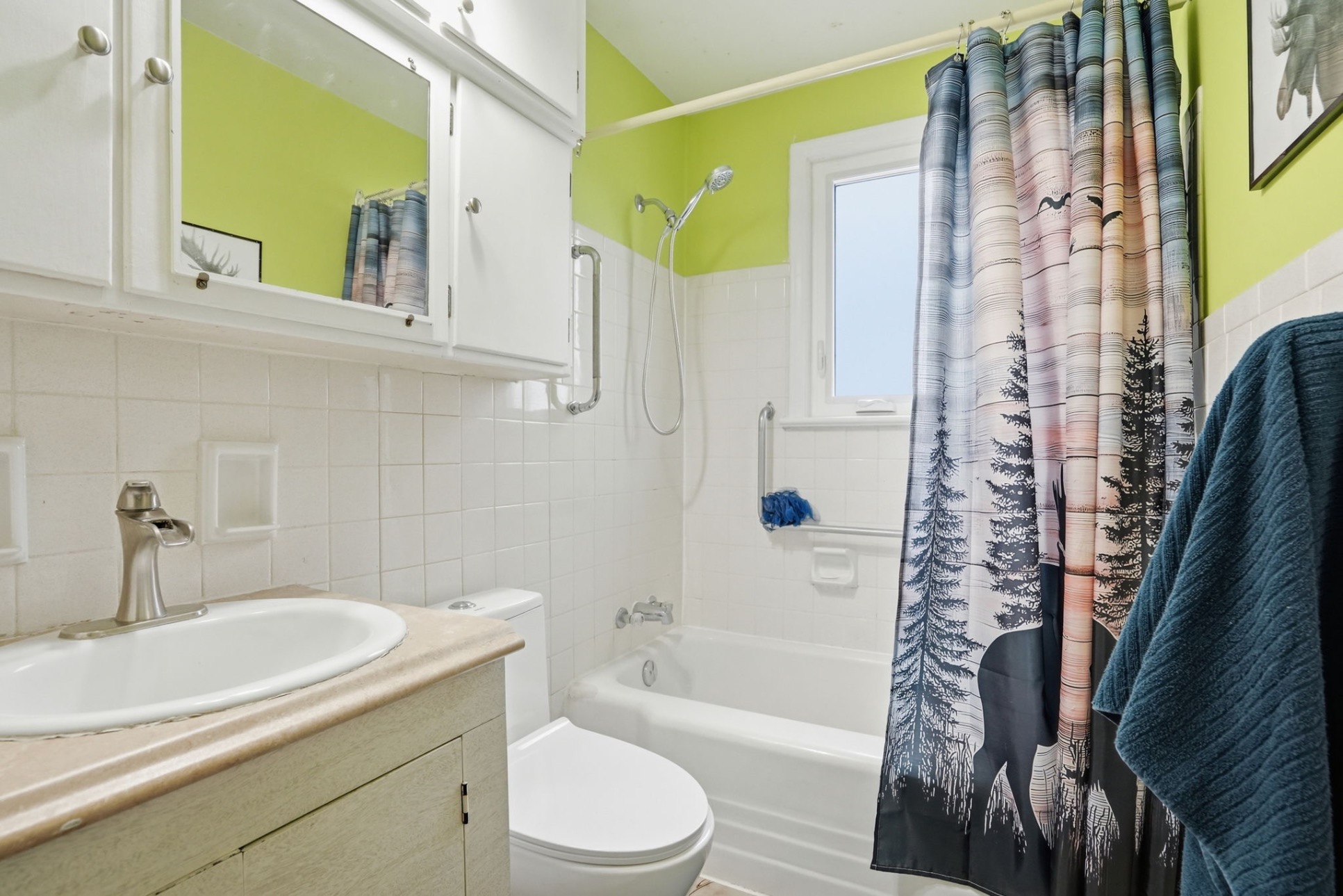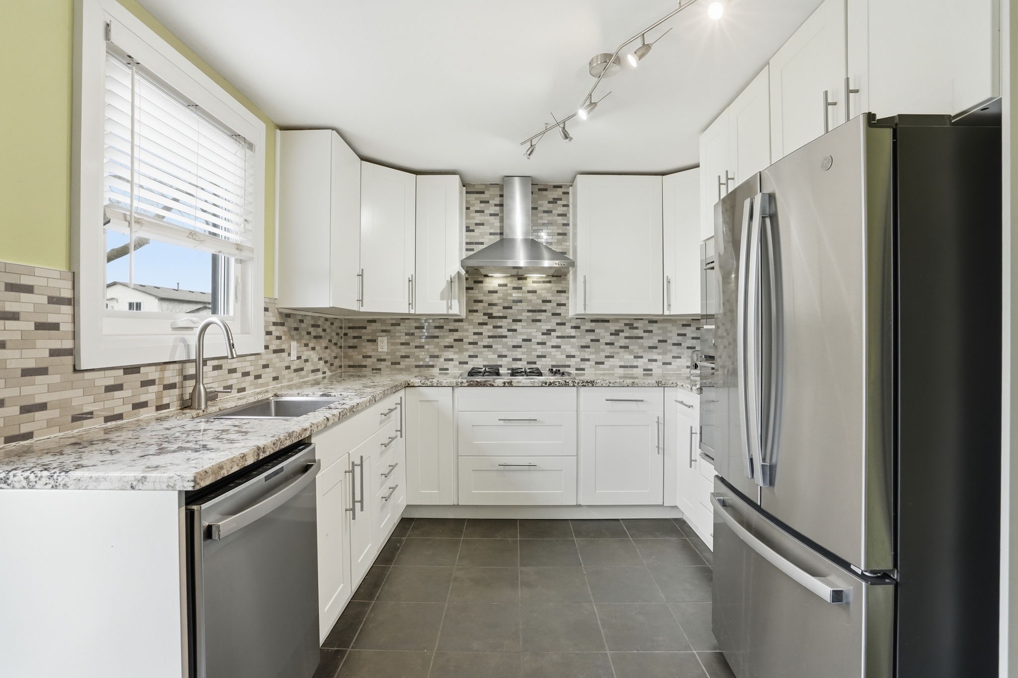 Nicely renovated 1.5 storey, 3 bedroom, 2 bathroom detached house on a large lot. Newer kitchen with white cupboards, granite counter tops, built in dishwasher, cooktop, microwave, and oven. Stainless steel fridge, washer and dryer included. New 3 piece bathroom on second floor with walk-in shower. Hardwood floors on main level. Generous sized rooms throughout.