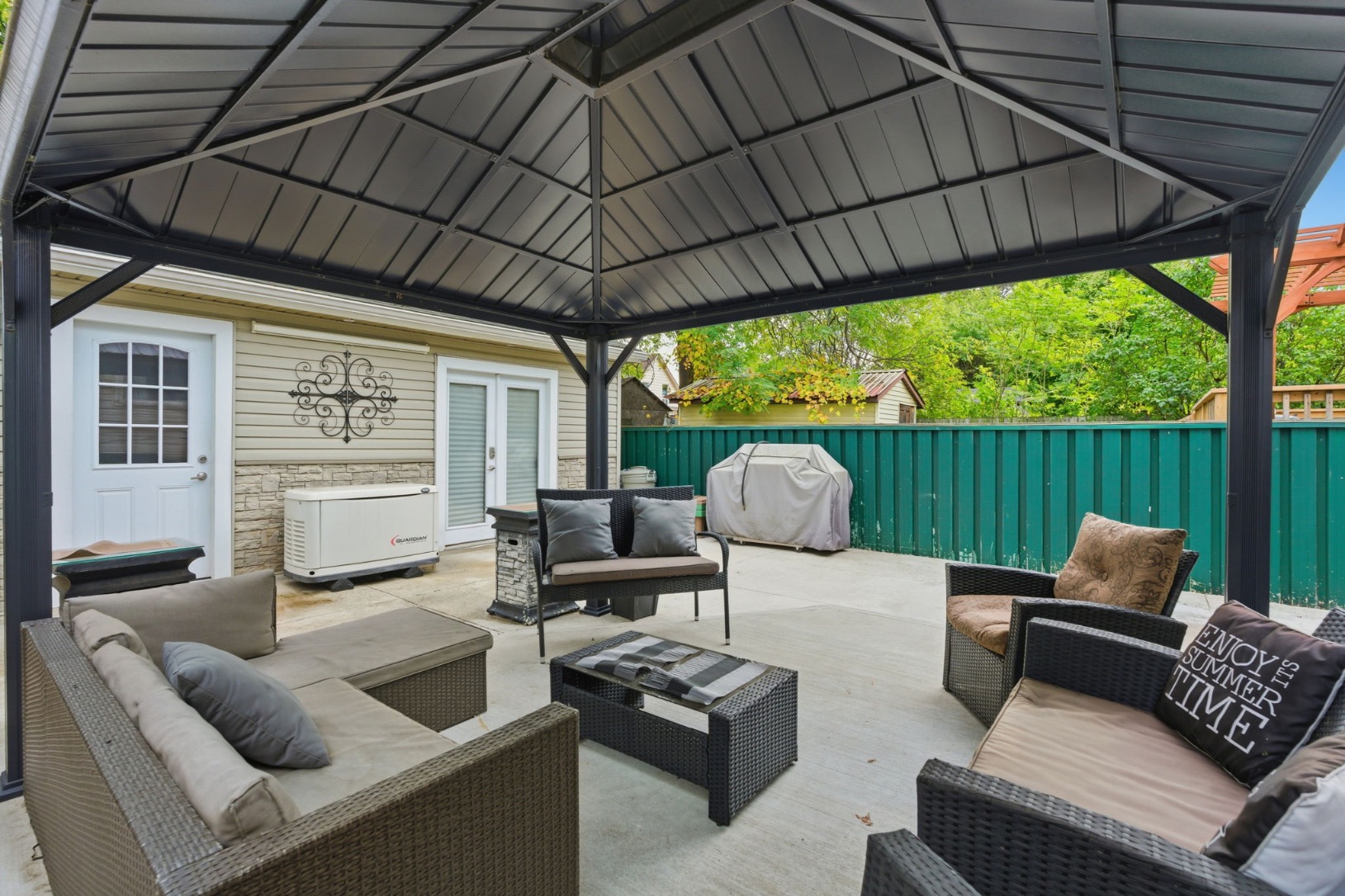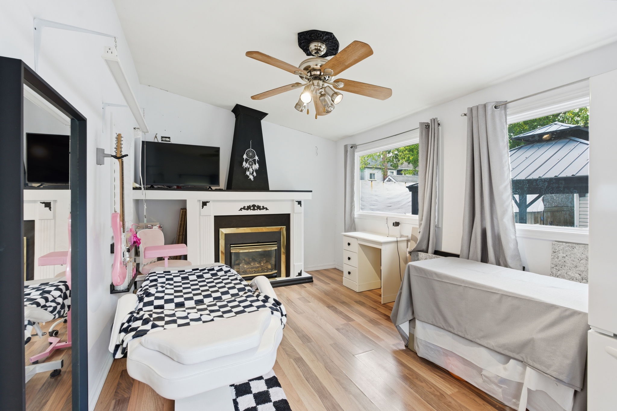 Welcome to this beautiful home located in Hamilton’s welcoming Crown Point North neighborhood- This 2 storey 3+1 bed 1 bath home greets you with a recently updated inviting façade, and a welcoming front porch perfect for enjoying morning coffee or evening chats. Step inside to a welcoming front entrance that flows into a bright and comfortable dining room, where large windows fill the space with natural light. From there you transition seamlessly into the living area that’s adjacent kitchen—a convenient layout perfect for both everyday meals and entertaining guests. The bonus room behind the kitchen has a gas fireplace and offers versatility for an office or another bedroom. The entire home has been outfitted with Roxul insulation, new HVAC, updated plumbing and electrical. This home is rock solid and well grounded. Retreat upstairs to discover brand new vinyl plank flooring 3 good sized bedrooms and an updated 3 piece bathroom. The gorgeous master bedroom is equipped with a gas fireplace with lovely stone work. The lower level which is partially finished provides an additional room, ample storage space and potential for additional living space. Outside, the fully fenced back yard becomes your own private sanctuary with massive gazebo and a large concrete pad. Perfect for hosting bbq or simply basking in peaceful moments under the open sky. The beautiful recently built hobby garage is the spectacle of the backyard. With heated floors- gas, water, sewer and electrical are all tied in. One side was used a dog grooming area and other side is used as a man cave/storage area. Located near schools, parks and public transit, commuters will appreciate the effortless drive to major routes like the Red Hill Valley Parkway, QEW, and the Mountain access—ensuring quick connections to everywhere Hamilton has to offer. Whether you’re a first-time home-buyer, a growing family, or simply seeking a flexible, comfortable home in a great location, this property is ready to welcome you.