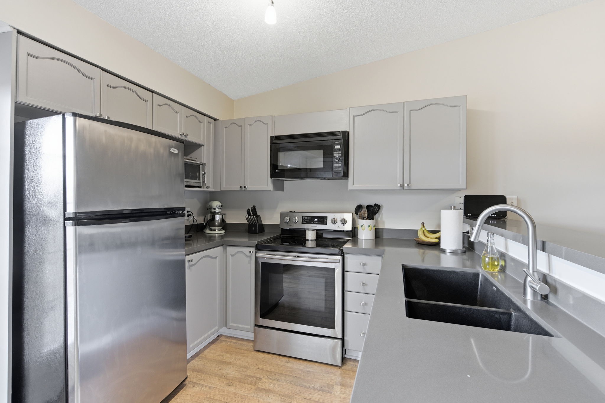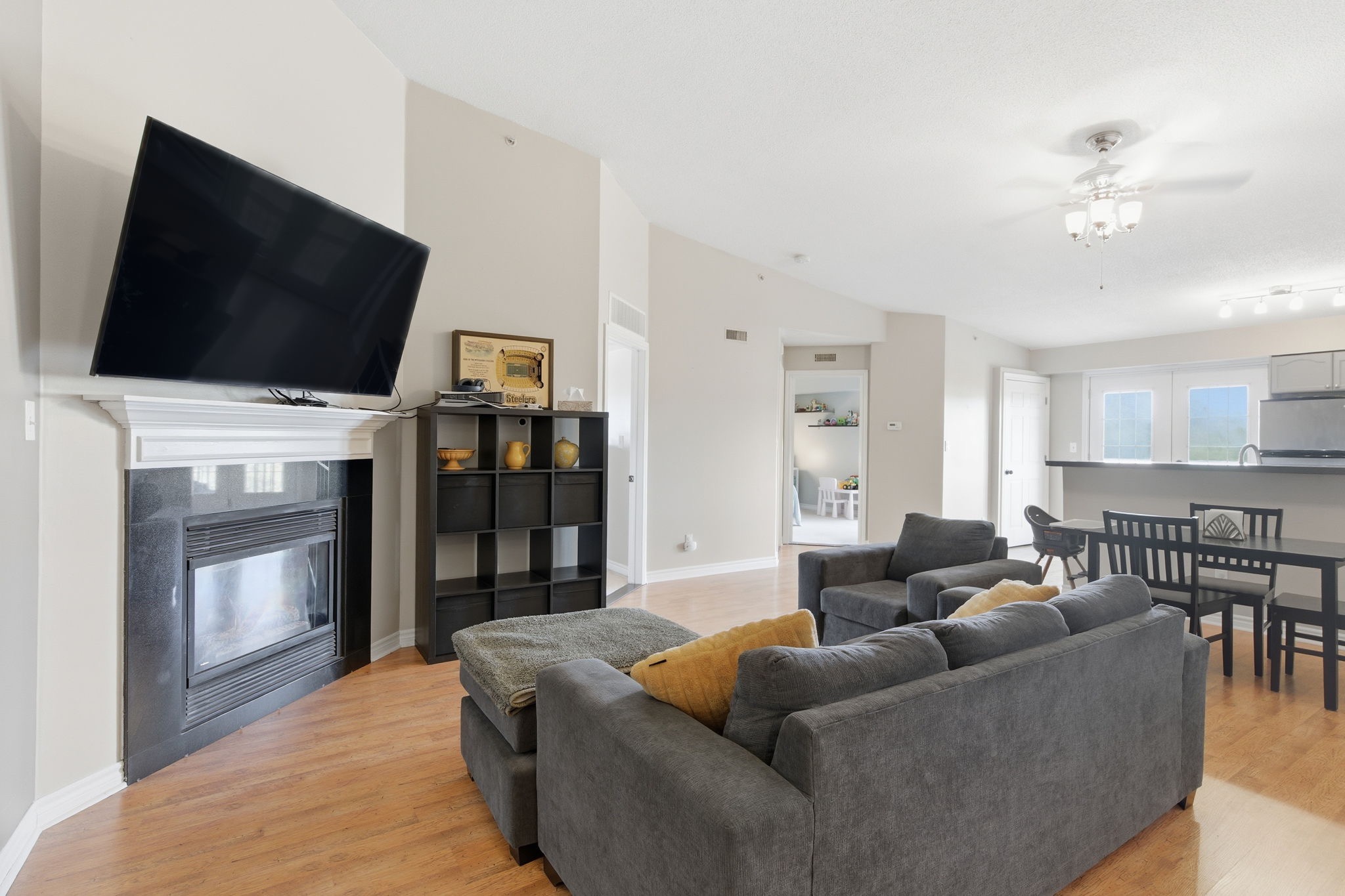 Welcome to 402–4003 Kilmer Drive — a beautifully appointed condo offering over 1,000 sq. ft. of bright, open-concept living in one of Burlington’s most desirable communities. Step inside to find a spacious chef’s kitchen with ample cabinetry, a breakfast bar, and open sightlines to the living and dining areas — perfect for entertaining or relaxing at home. The primary bedroom features a 4-piece ensuite and generous closet space, while the second bedroom and additional full bathroom offer excellent versatility for guests or a home office. Enjoy the convenience of in-suite laundry, a large private balcony, and 1 owned underground parking space plus a locker for extra storage. Located in a prime Burlington location, just minutes to shopping, parks, trails, highways, and GO Transit — this home offers the perfect blend of comfort, functionality, and modern lifestyle.