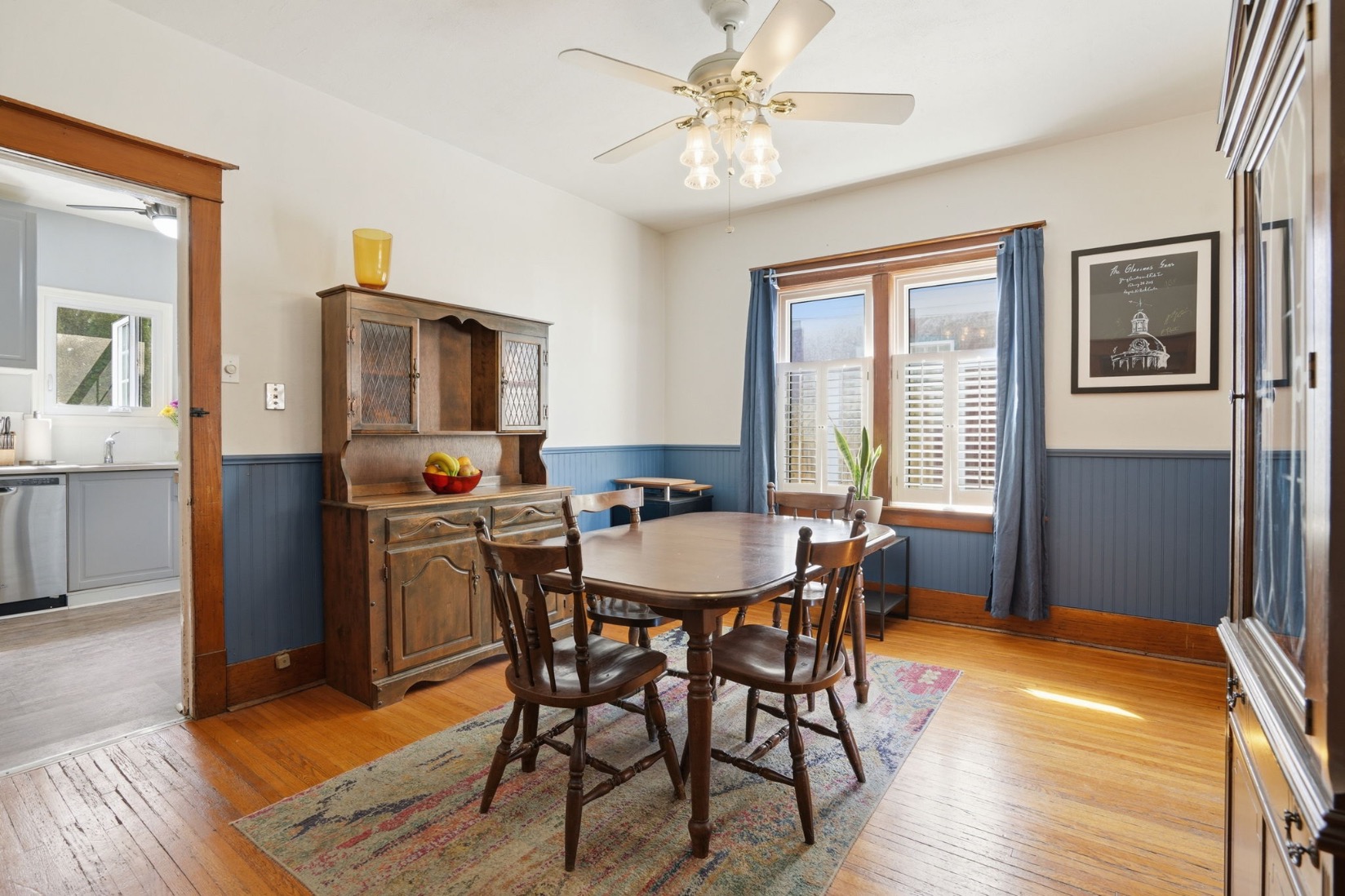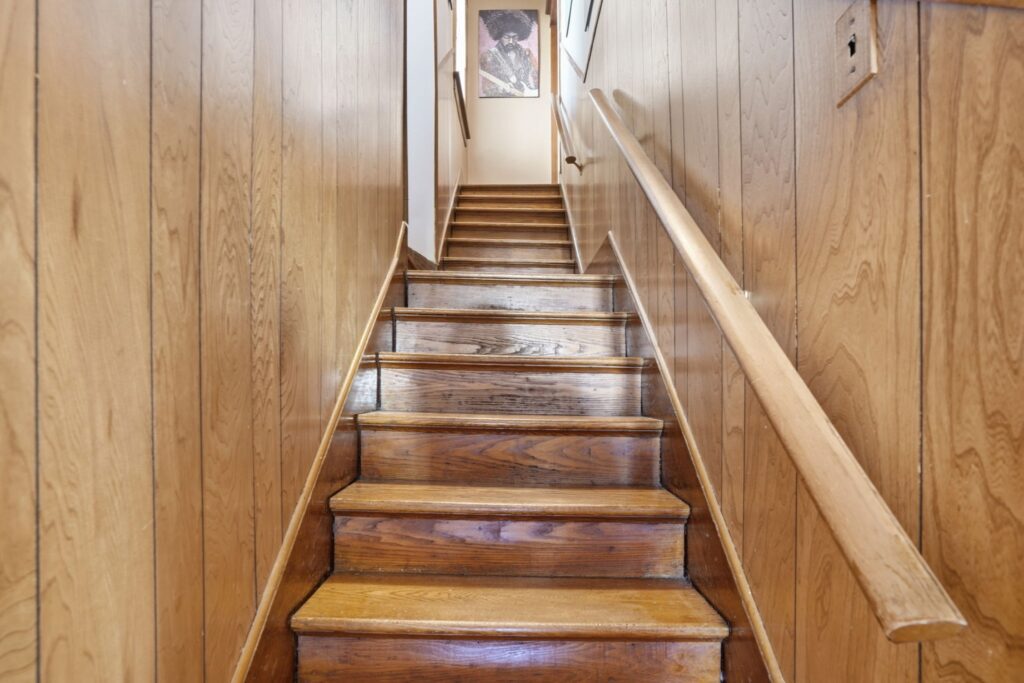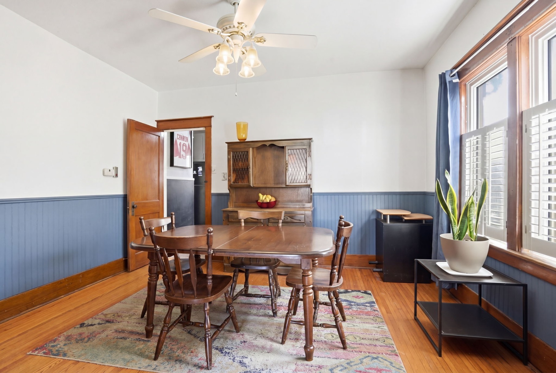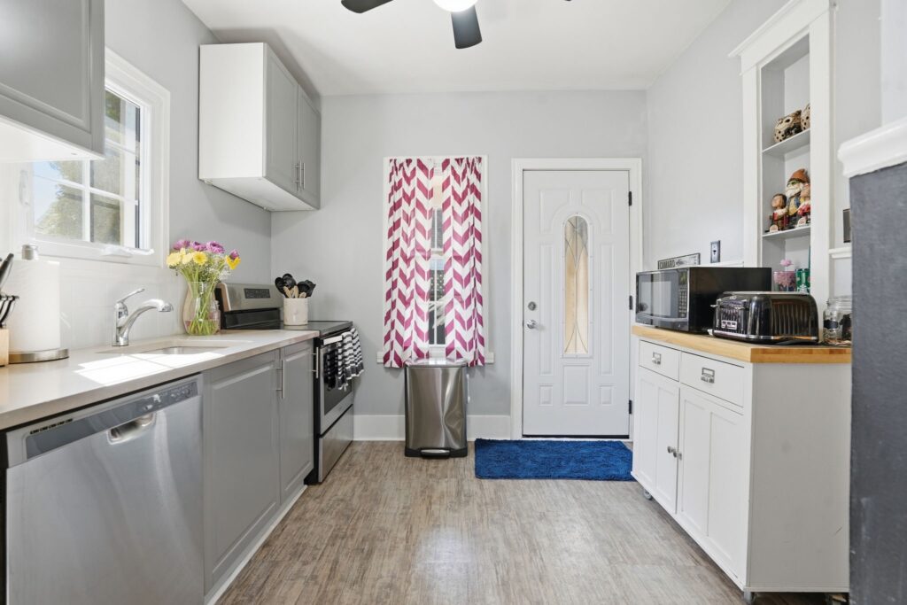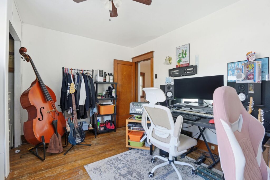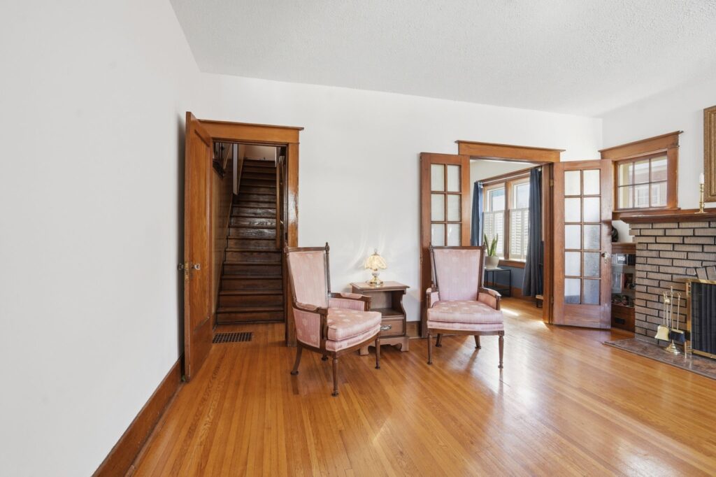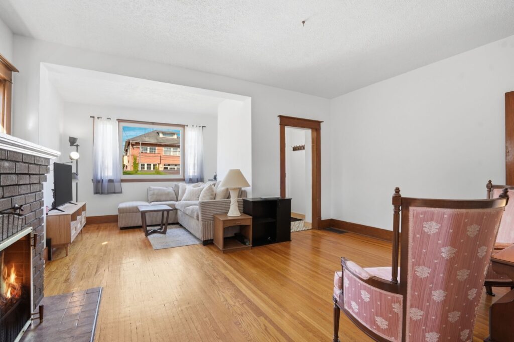 Character-filled home offering a blend of timeless charm and modern comfort. The main floor features hardwood flooring and higher ceilings, creating a bright and inviting space. Upon entry, you’re welcomed by a spacious living room with fireplace and an attached sun-filled den, perfect for a home office or additional seating. A separate dining room provides the ideal setting for gathering and entertaining, while the kitchen has been recently upgraded with a quartz countertop and includes a fridge, stove, and dishwasher, with convenient access to the low-maintenance backyard. An additional exterior entrance leads to a versatile fourth bedroom on the main level, well-suited as a guest room, children’s room, or home office, and has previously been used as both a bedroom and workspace. The staircase showcases a unique design, branching into two levels. Continuing straight leads to one of the upper bedrooms, while the alternate path opens to a spacious landing, ideal for a workstation or reading area. Upstairs also features a 4-piece bathroom with a deep soaker tub, a spacious primary bedroom with ceiling fan and generous closet space, and a second well-proportioned bedroom, also complete with a ceiling fan. The partially finished basement includes a large rec room with an open 2-piece bath and a separate laundry room. This home offers flexibility and function, making it well-suited for a young professional, growing family, or investor. Ideally located with quick highway access and within walking distance to the downtown core, local shops, restaurants, parks, and schools.