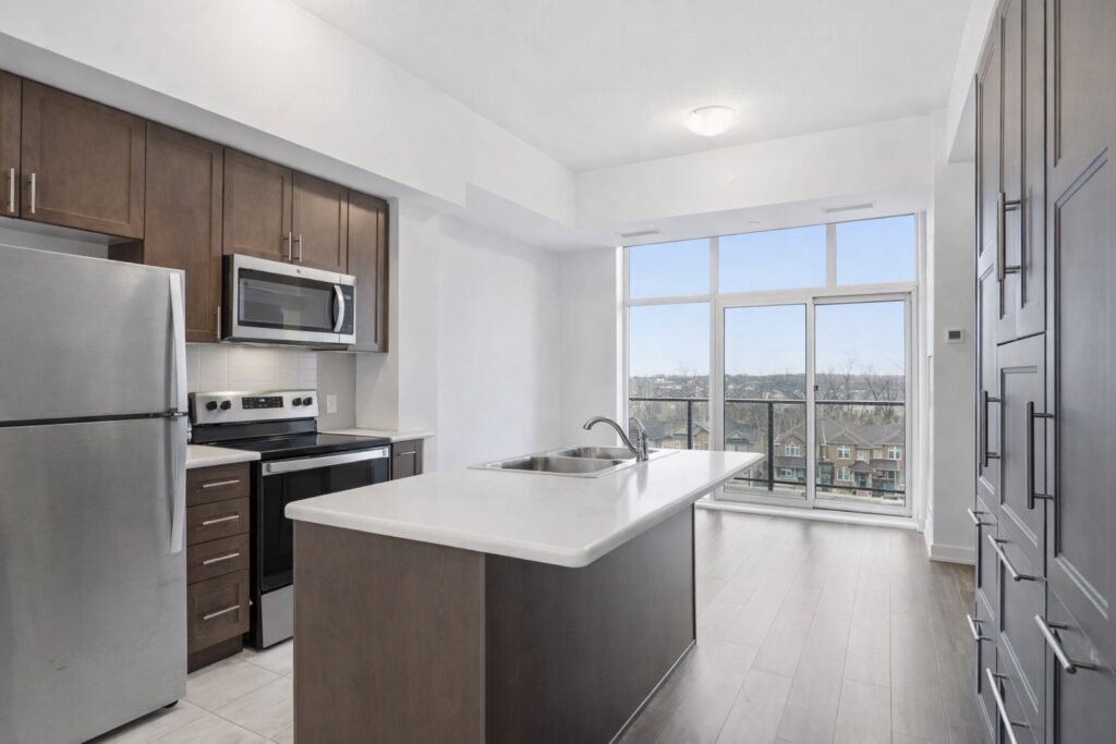This stunning 1-bed 1-bath suite stands out with its exceptional privacy: NO NEIGHBOURS ABOVE, and the front door opens toward the rooftop garden/BBQ terrace (behind glass), meaning NO NEIGHBOURS DIRECTLY ACROSS either, offering rare privacy and a peaceful living experience. Inside you’ll love the 10-ft. ceilings, bright open layout, and modern finishes throughout. The kitchen is beautifully designed with sleek quartz countertops, stainless steel appliances and contemporary cabinetry. Step out onto your private balcony facing South East. Perfect for a morning coffee or relaxing in the evenings. Trend condos is a state-of-the-art modern building with impressive amenities and stylish common areas. The location is exceptionally close to major highways, shopping, parks, schools, and everything that makes Waterdown one of the most desirable communities. Includes one underground parking space and one locker. Geothermal heating helps keep monthly bills low.
