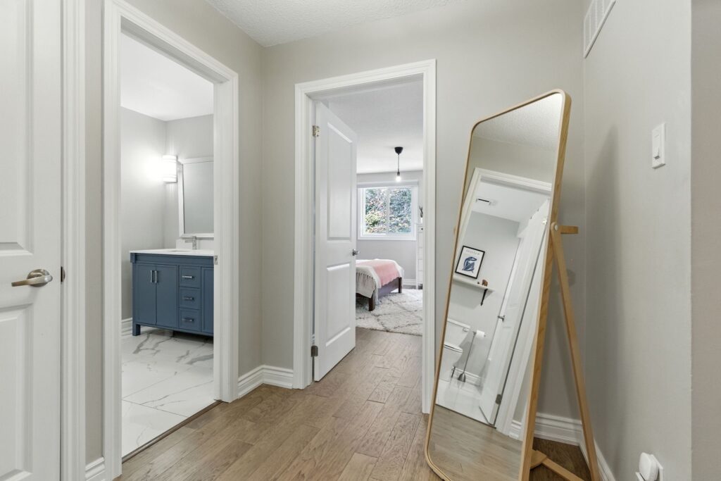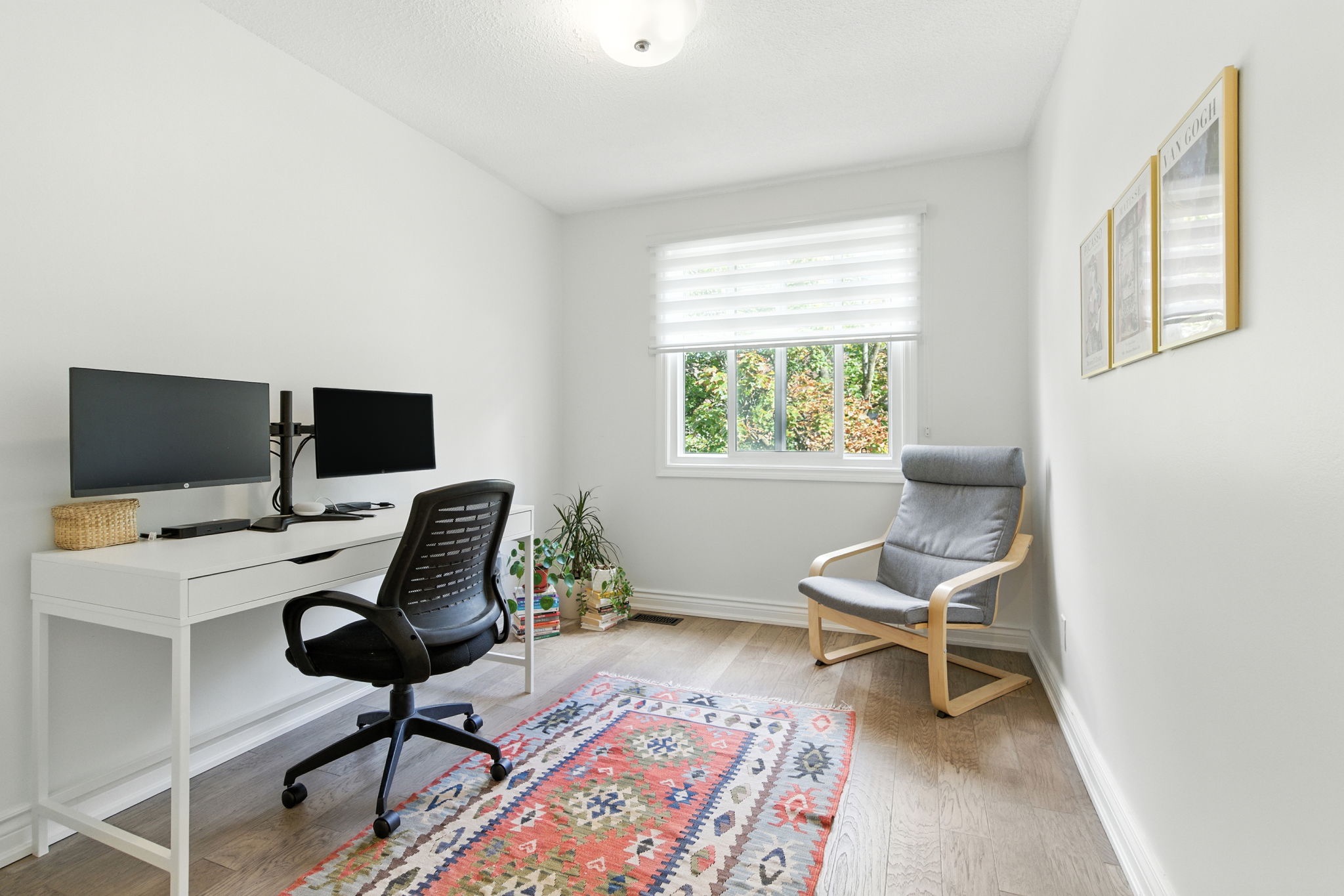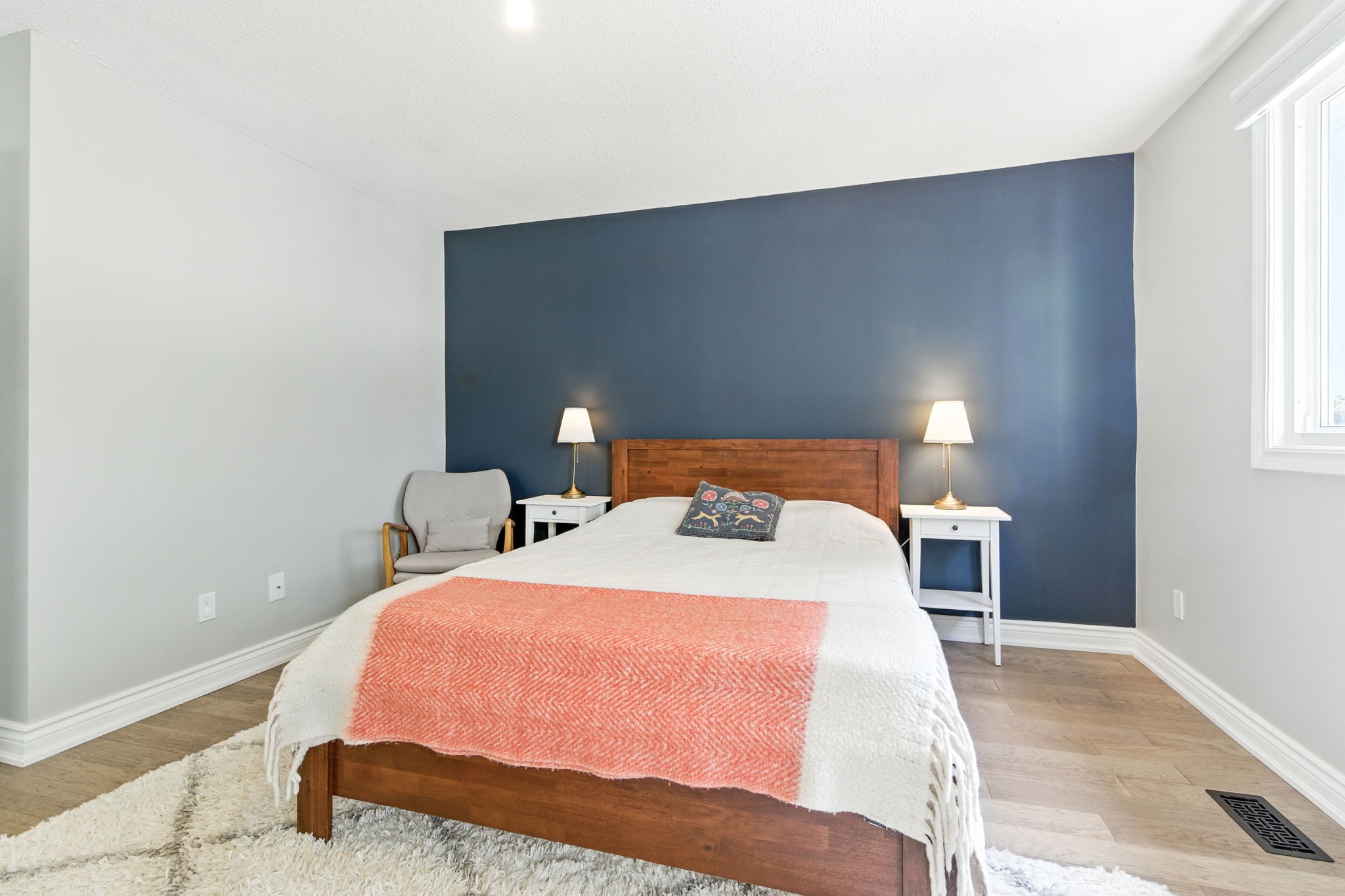 Highly sought-after South Burlington! This beautifully renovated 4 bedroom, 3 bathroom townhouse offers 1,470 sq. ft. of modern living. With engineered hardwood throughout, the open concept kitchen features high-end stainless steel appliances (5 year warranty on fridge and dishwasher), quartz countertops, and a breakfast bar with warm wooden accents. Upstairs, you’ll find three spacious bedrooms filled with natural light, and 2 full bathrooms. The expansive primary bedroom includes a walk-in closet and a private ensuite. The fully finished basement adds versatile living space, complete with a family room, office, and an additional bedroom. Further updates include a 2023 deck, 2024 furnace and recently upgraded A/C. Step outside and enjoy the privacy of no rear neighbours, with Iroquois Park right in your backyard! Nestled in a family-friendly community known for top-rated schools, parks, and trails, this home is perfectly located near the lake, with quick access to the QEW, Highway 403, shopping, public transit, and Appleby GO.