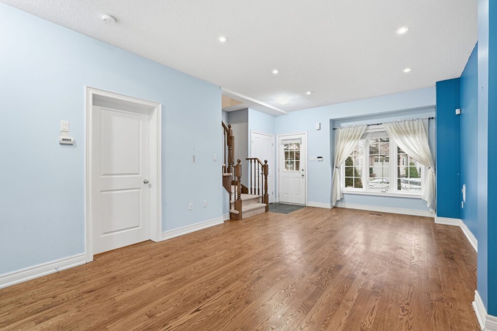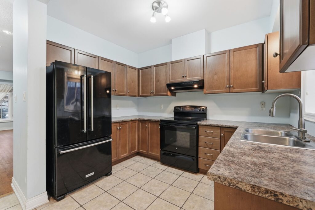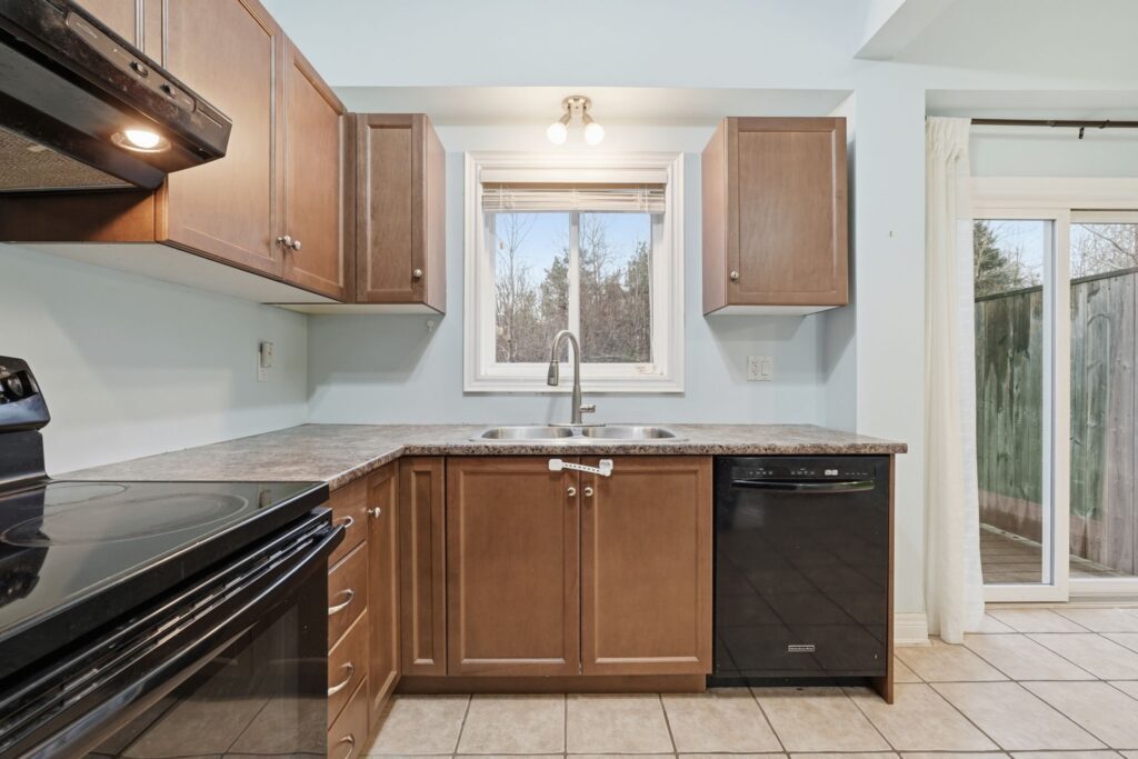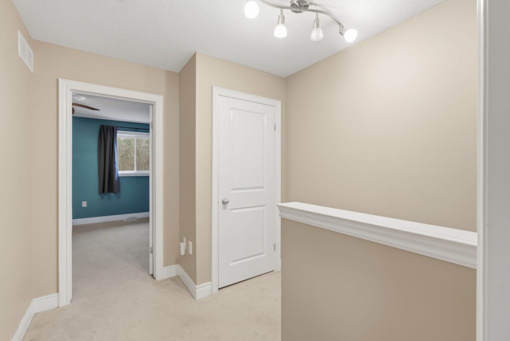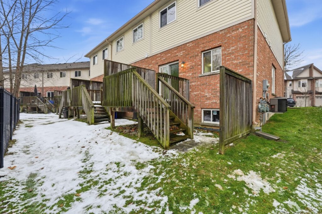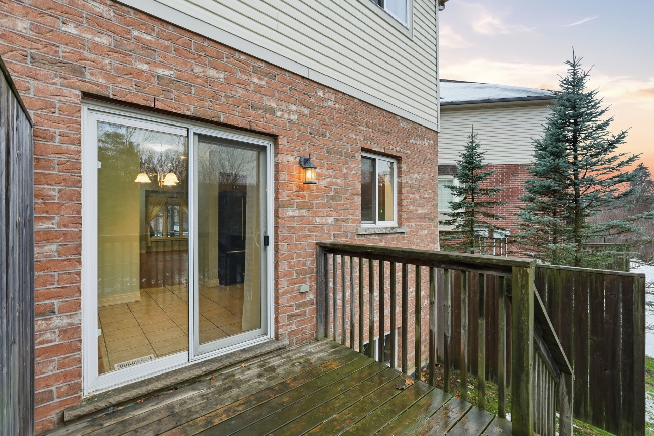 Beautifully built by Marz Homes, this approximately 1,155 sq. ft. open-concept end-unit townhome backs onto serene, treed green space, offering both privacy and picturesque views. The main level showcases a bright and inviting living room highlighted by oak hardwood flooring, pot lights, and 9-foot ceilings, seamlessly flowing into the eat-in kitchen with modern maple cabinetry and a convenient powder room. Upstairs, you’ll find two spacious, sun-filled bedrooms, each with walk-in closets, and a well- appointed four-piece bathroom. The primary bedroom enjoys a stunning treetop view, creating a peaceful retreat. Additional features include concrete block separation between units for enhanced soundproofing, central air conditioning, central vacuum, a 3-piece rough-in, window coverings, and a deck off the kitchen overlooking the green space. A detached garage and an additional parking space complete the package. Ideally located in a well-maintained, boutique complex just steps to downtown Ancaster amenities, shopping, and quick access to Highway 403. RSA.
