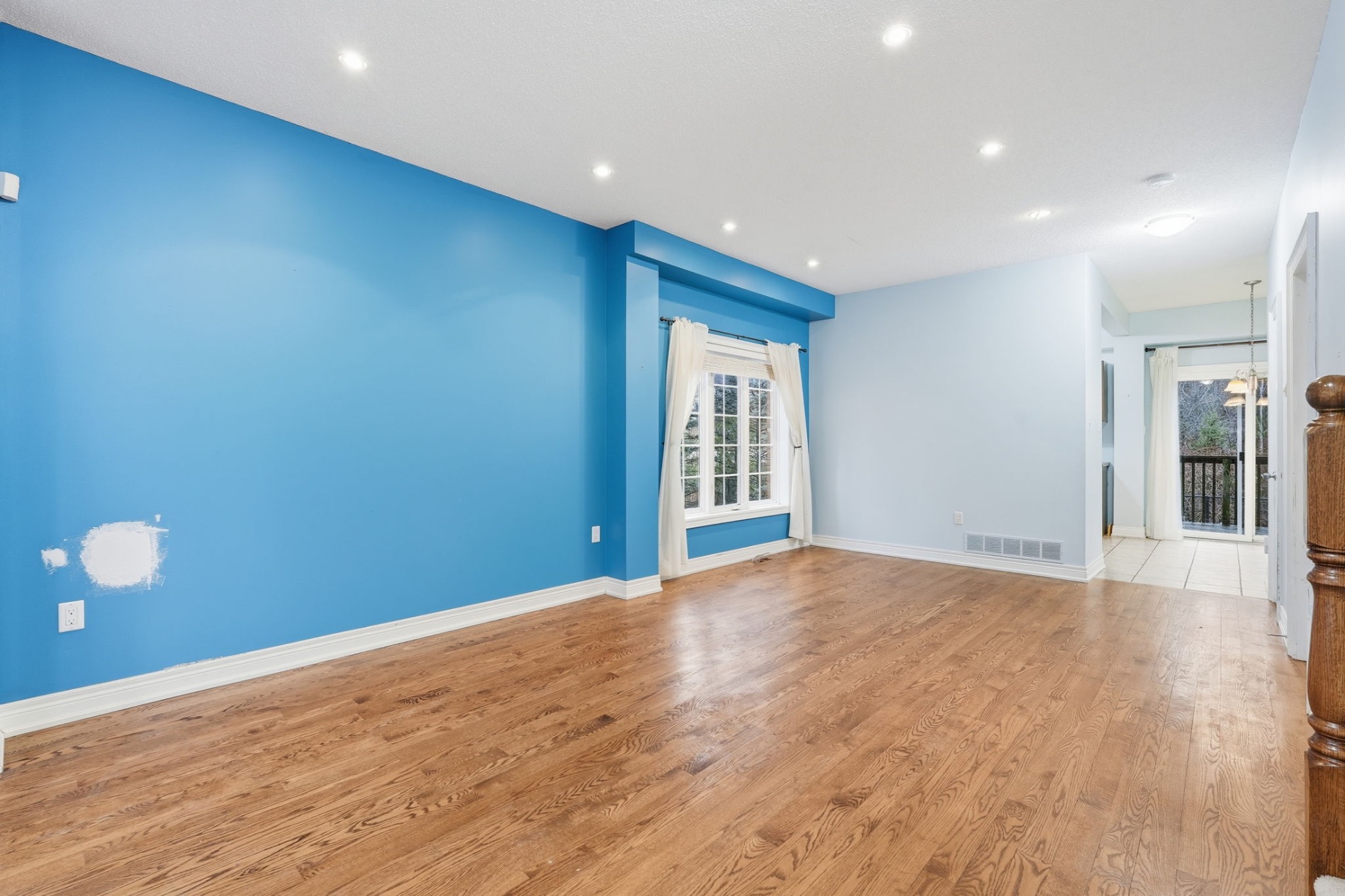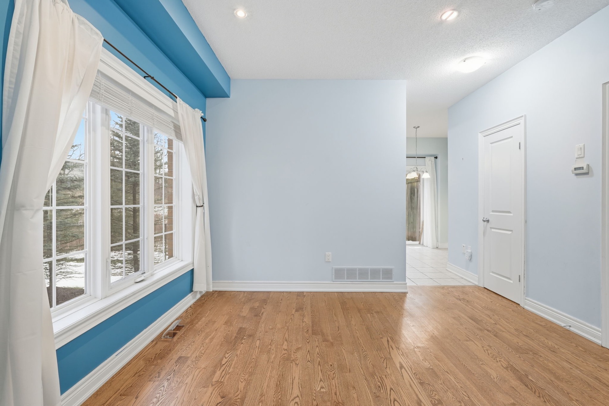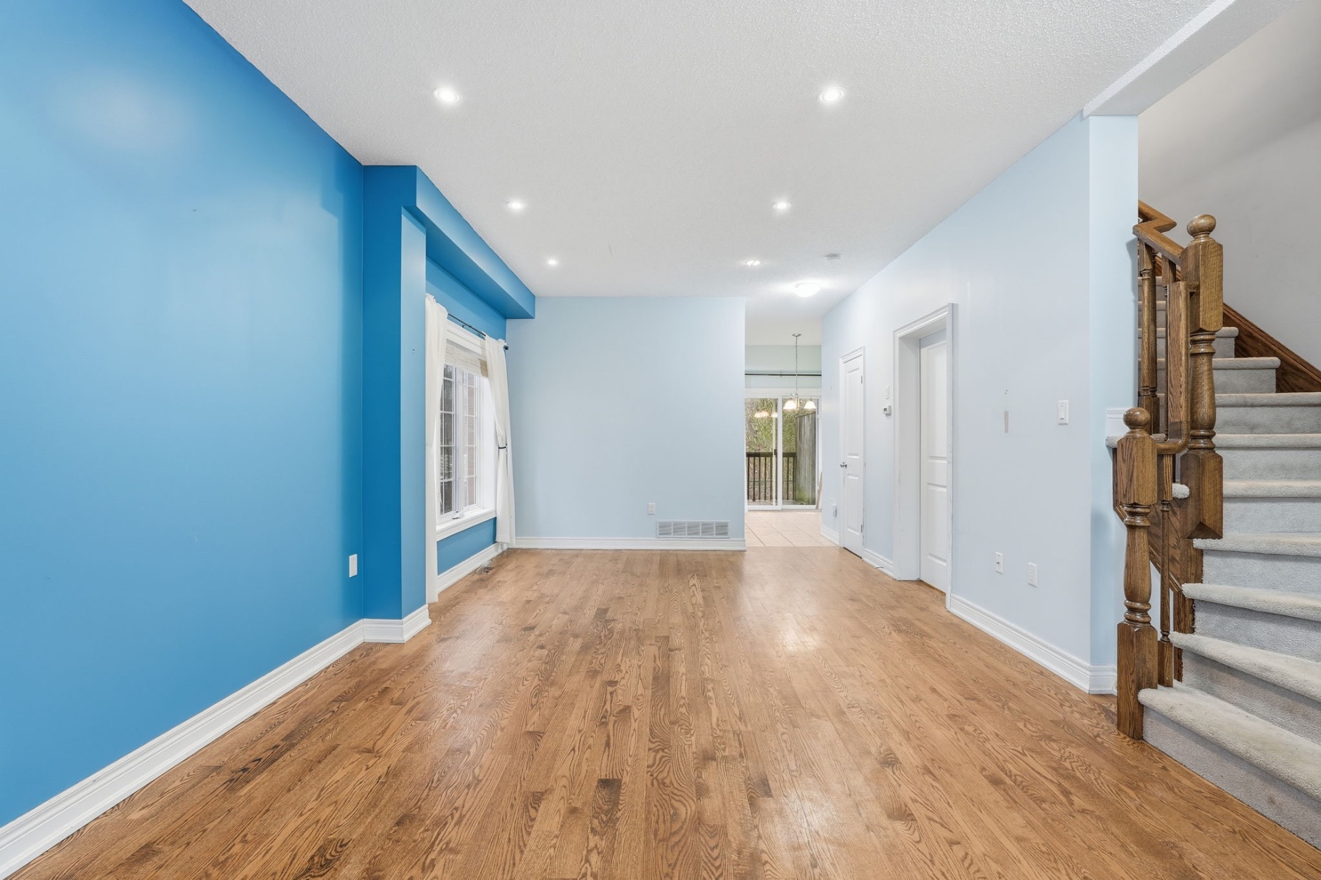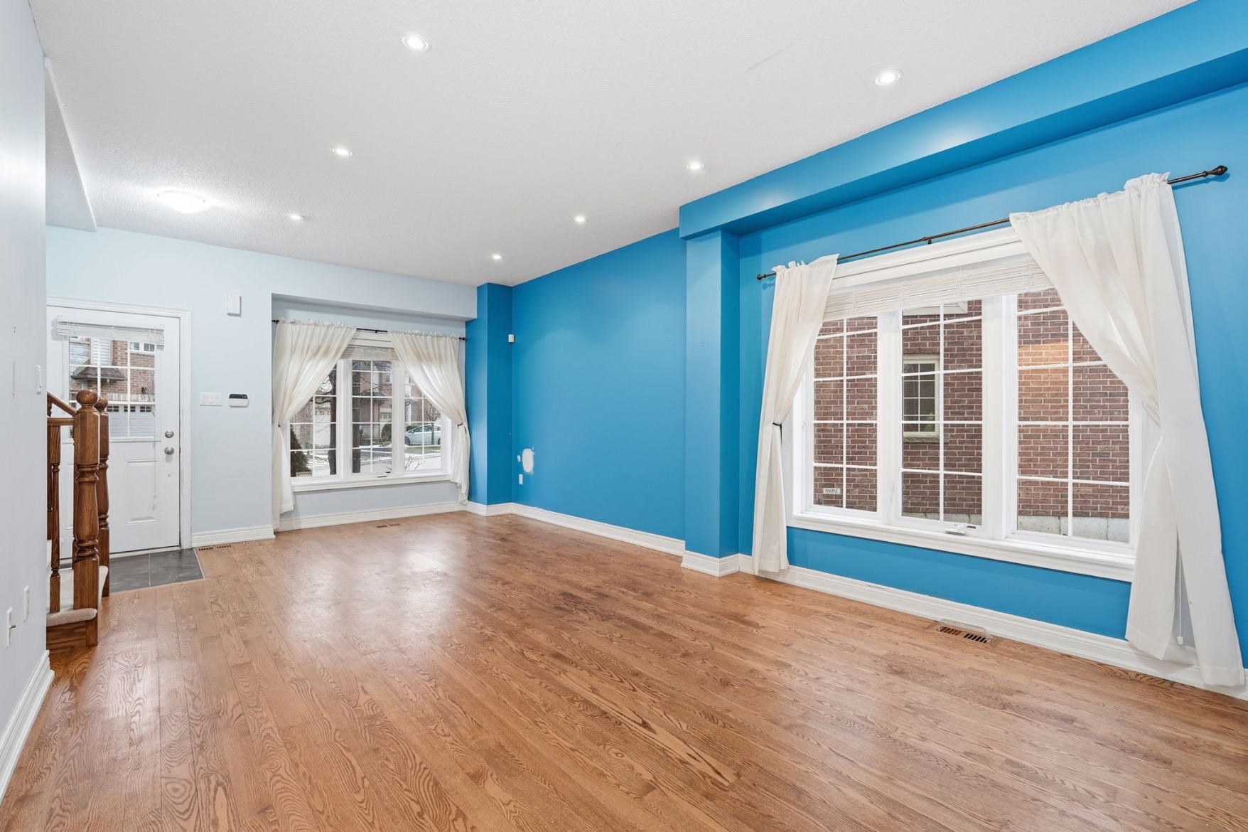 Beautifully built by Marz Homes, this approximately 1,155 sq. ft. open-concept end-unit townhome backs onto serene, treed green space, offering both privacy and picturesque views. The main level showcases a bright and inviting living room highlighted by oak hardwood flooring, pot lights, and 9-foot ceilings, seamlessly flowing into the eat-in kitchen with modern maple cabinetry and a convenient powder room. Upstairs, you’ll find two spacious, sun-filled bedrooms, each with walk-in closets, and a well- appointed four-piece bathroom. The primary bedroom enjoys a stunning treetop view, creating a peaceful retreat. Additional features include concrete block separation between units for enhanced soundproofing, central air conditioning, central vacuum, a 3-piece rough-in, window coverings, and a deck off the kitchen overlooking the green space. A detached garage and an additional parking space complete the package. Ideally located in a well-maintained, boutique complex just steps to downtown Ancaster amenities, shopping, and quick access to Highway 403. RSA.