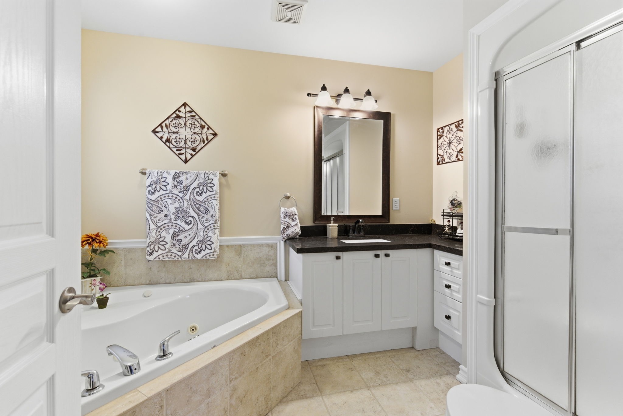 The main level features approximately 2,100 sq. ft. of updated living space, showcasing a modern kitchen, spacious principal rooms, and a bright, functional layout ideal for both everyday living and entertaining. The elevated primary suite is exceptionally spacious, complete with a walk-in closet and a large ensuite bath, creating a true private retreat. The main floor also includes two additional spacious bedrooms and a well-appointed bathroom.