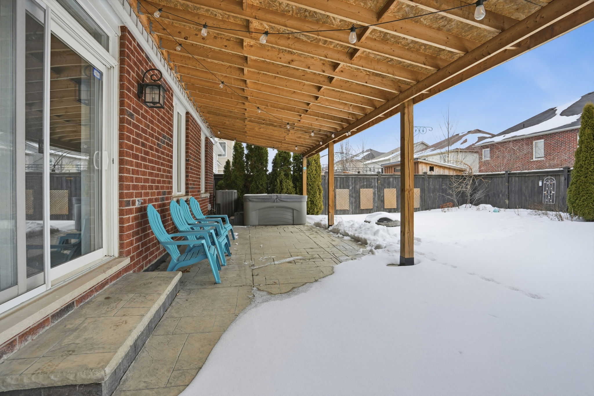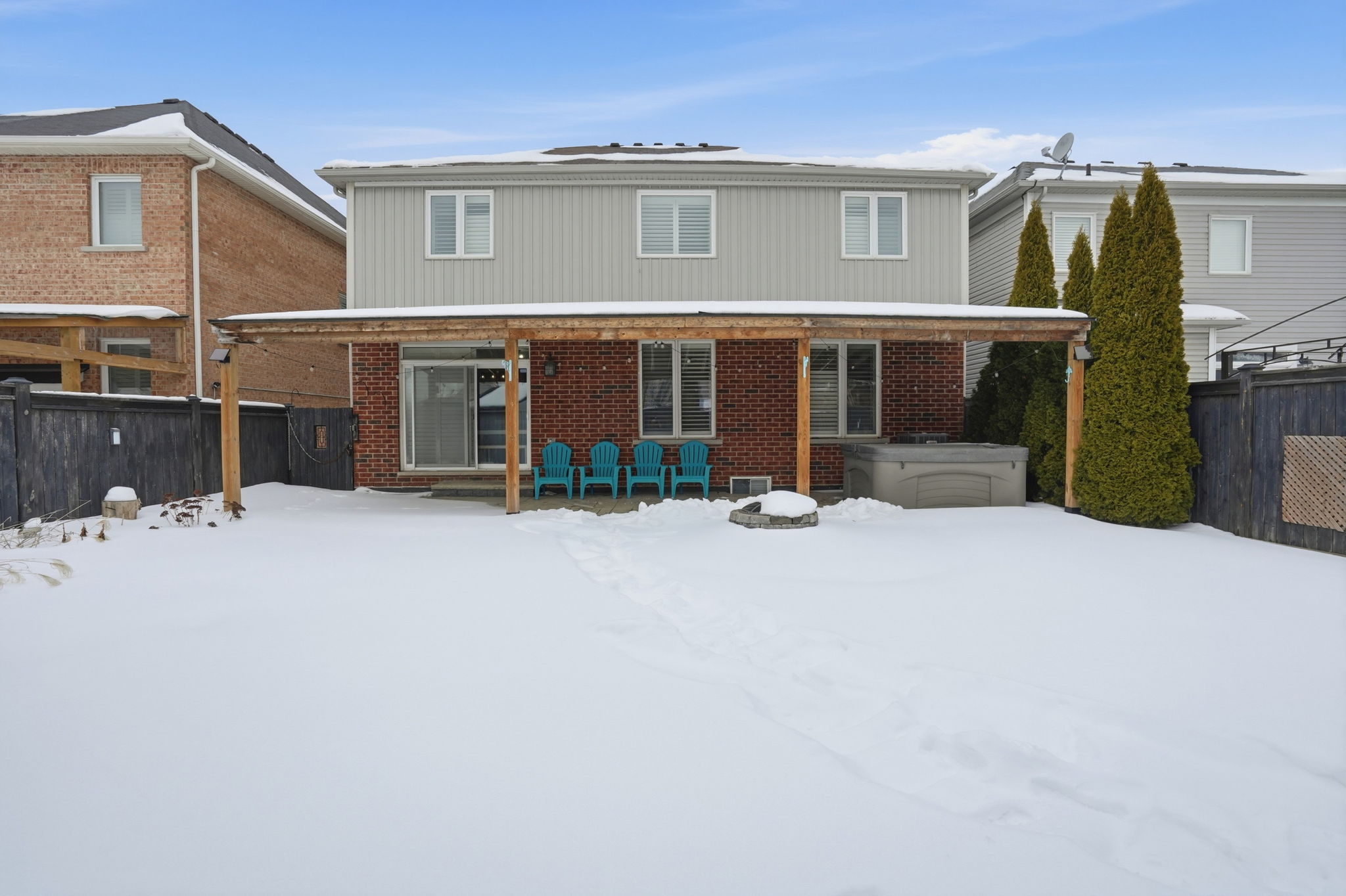 The heart of the home is the upgraded, oversized chef’s kitchen featuring granite counters, a gas stove, and an extended pantry. It flows seamlessly to your private backyard oasis—an entertainer’s dream featuring a hot tub, built-in fire pit, and a custom stamped concrete patio with an extended awning for all-weather enjoyment. Upstairs offers bedroom-level laundry and four spacious bedrooms, including a primary retreat with a walk-in closet and spa-like 5-piece ensuite.