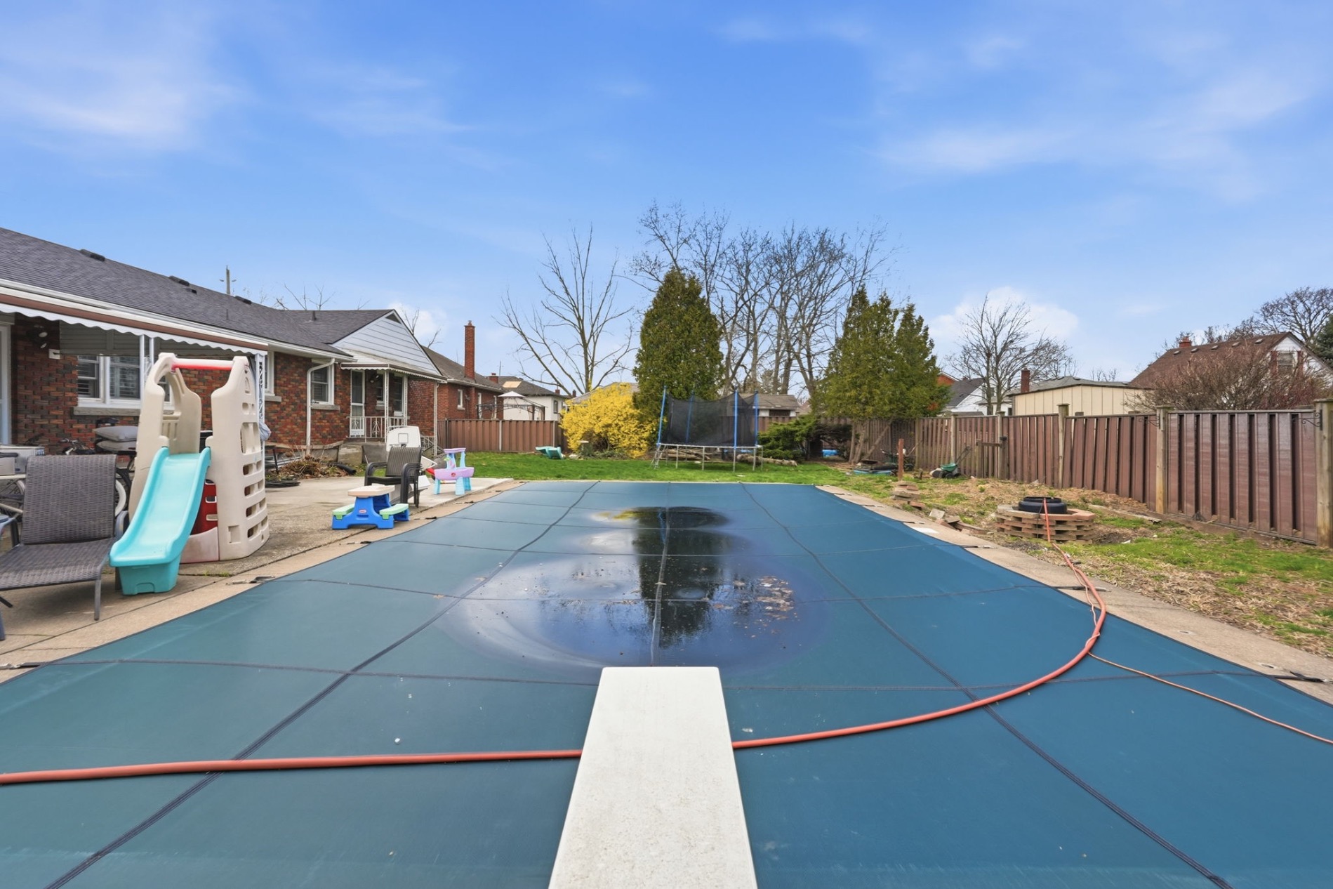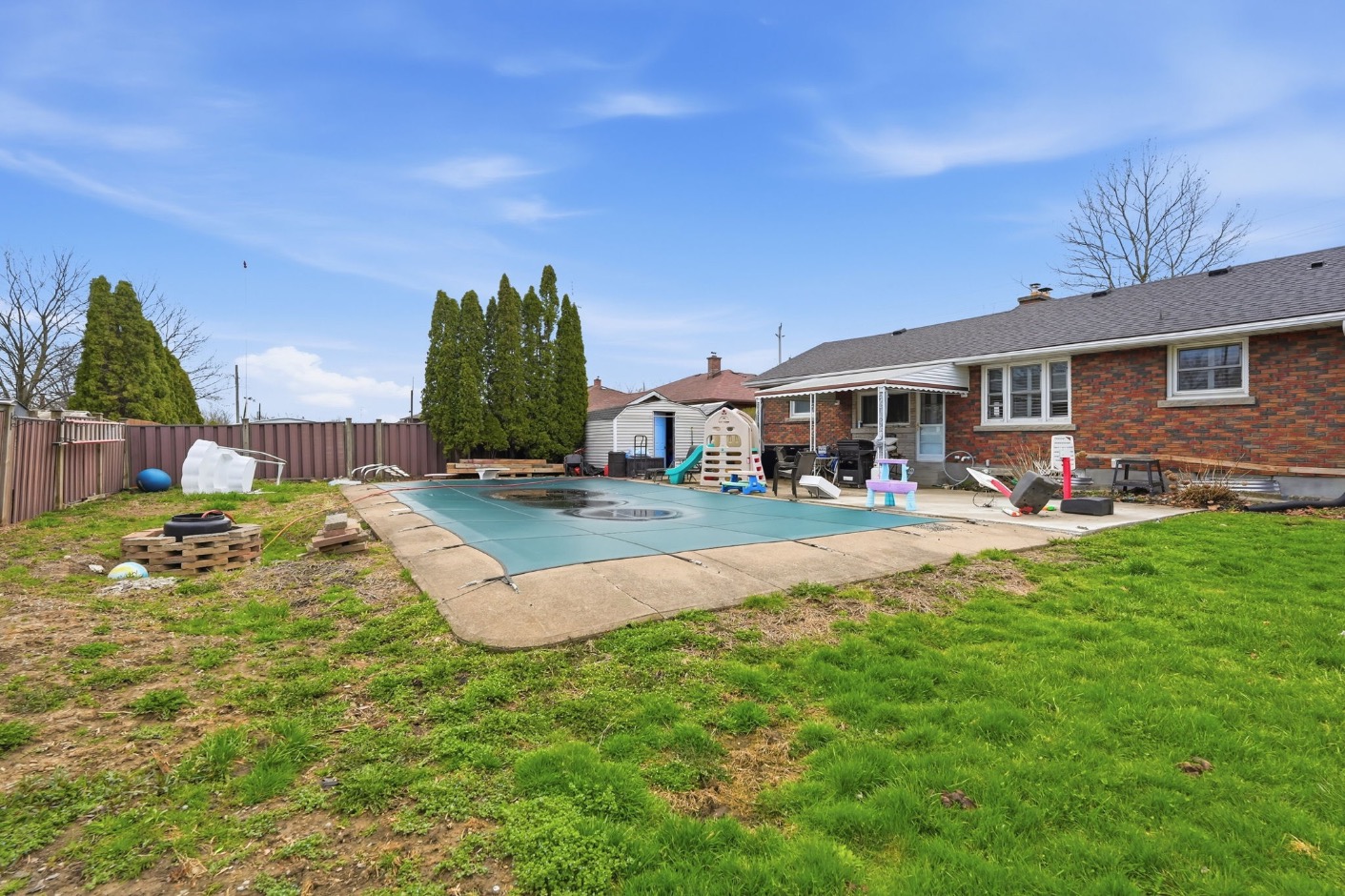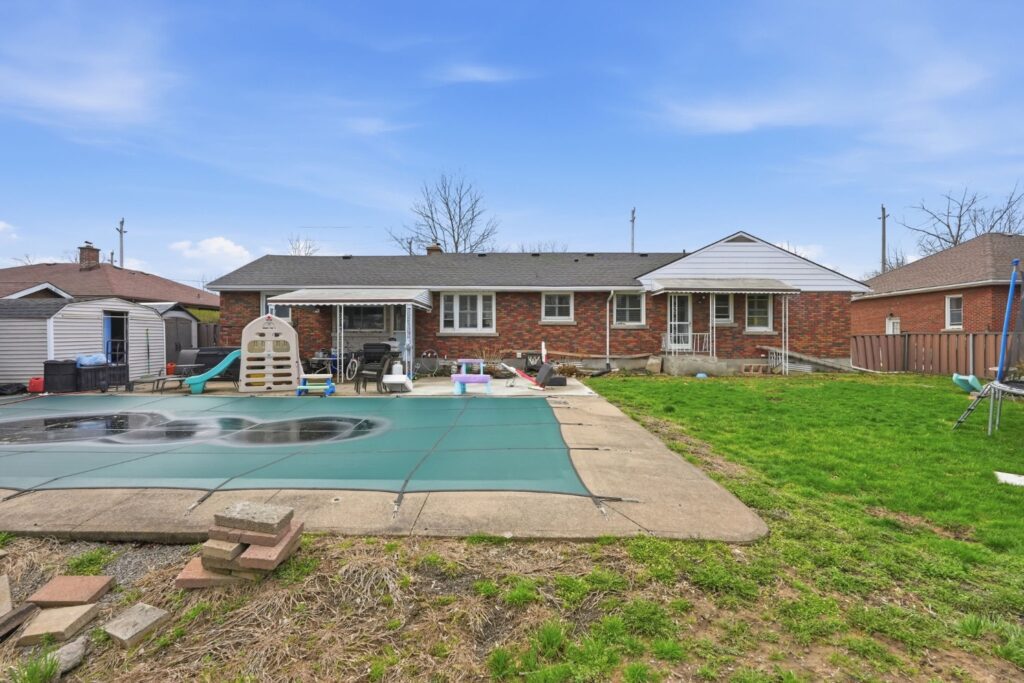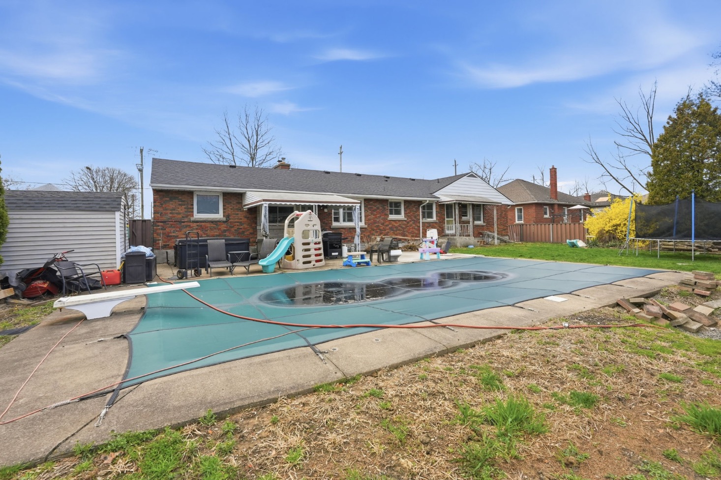 Welcome to this beautifully situated brick bungalow set on an impressive 102′ x 129′ double lot, offering over 1,540 sq ft of main level living space. Step inside to a bright open concept layout featuring a spacious living room and generously sized bedrooms, including a primary suite complete with ensuite bath. A 240 sq ft mudroom seamlessly connects the home to the garage, adding convenience and functionality. Enjoy summer living in the private backyard oasis with a 36′ x 18′ saltwater inground pool, new jacuzzi hot tub, and patio, perfect for entertaining and relaxing. The finished basement offers a separate entrance, additional bedroom, 3-piece bath, and ample storage, providing excellent in-law suite or future development potential. Ideally located close to schools, public transit, and highway access, this property offers the perfect blend of comfort, space, and opportunity.