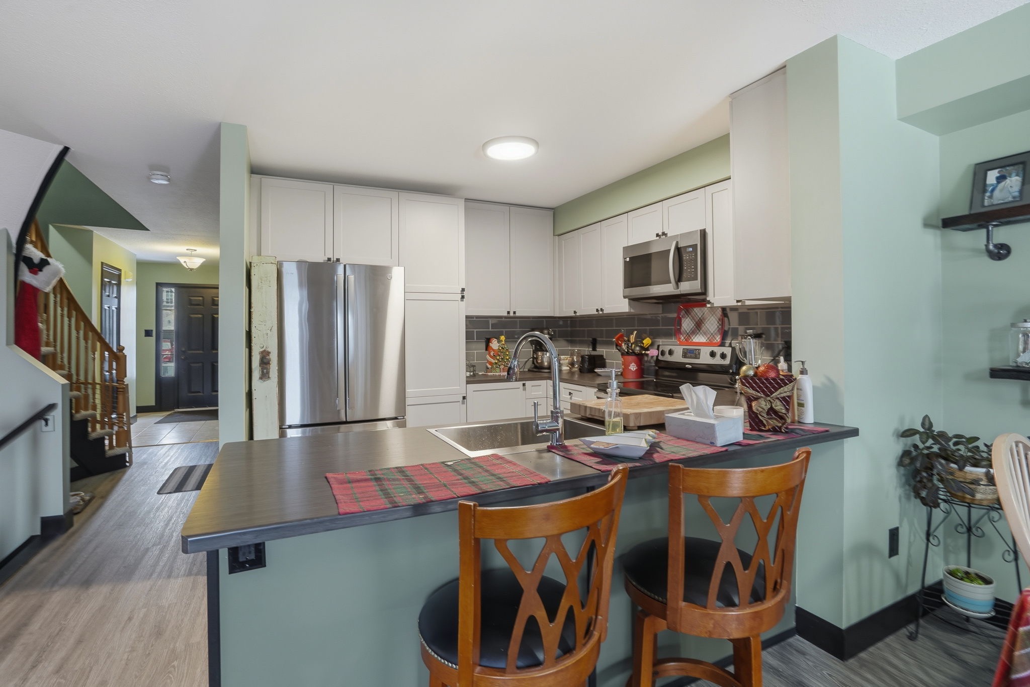 Located in a prime Ancaster neighbourhood, this end-unit townhome offers exceptional convenience with quick highway access and nearby shopping. The well-designed layout features 3 bedrooms and 2 bathrooms, enhanced by an extra side window that fills the home with natural light. The spacious upper-level bathroom includes a soaker tub and separate shower with ensuite privilege. A finished basement provides additional living space, while the dining room offers a walkout to a fully fenced yard with a dedicated deck area—ideal for outdoor enjoyment. Curb appeal is highlighted by a stone front façade, and all appliances are included for added value and ease of move-in.