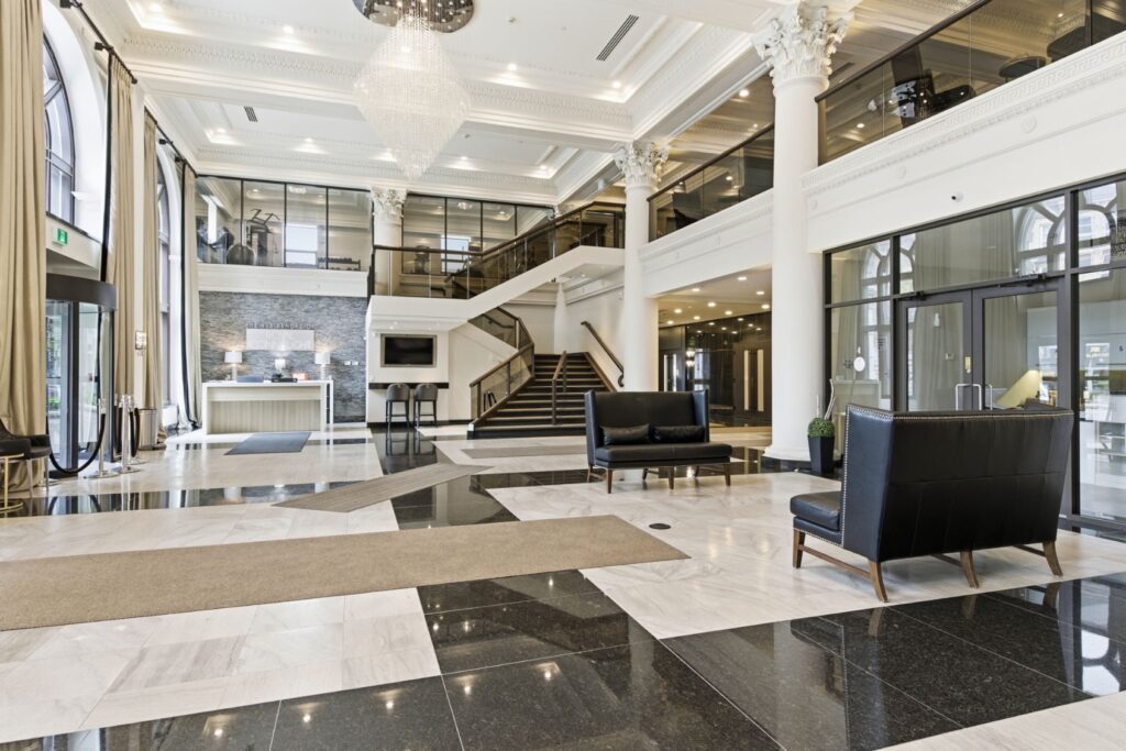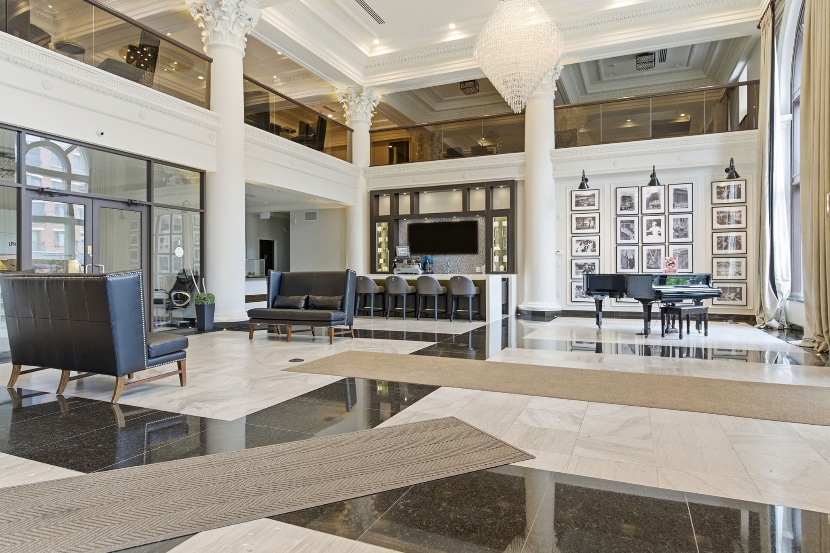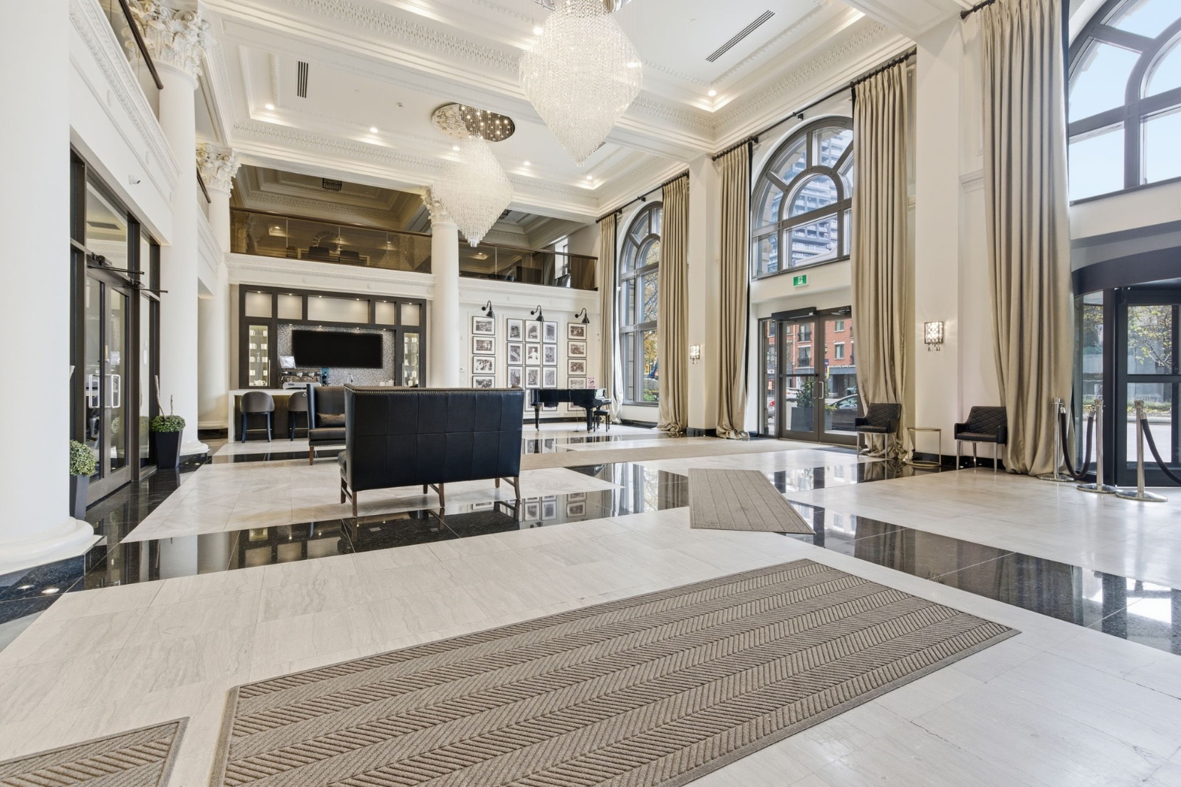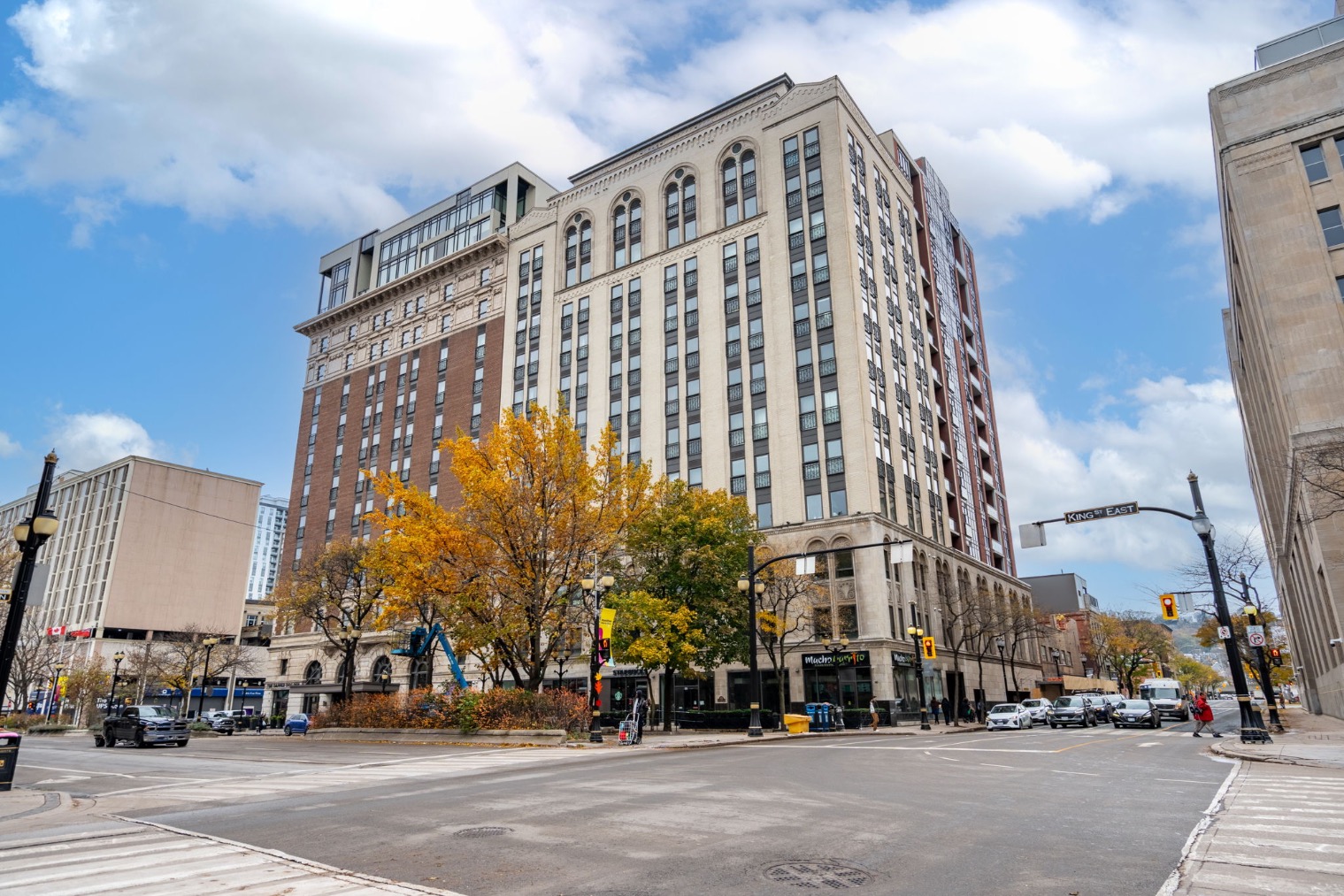 Bright, refined, and effortlessly contemporary – Suite 916 at the iconic Royal Connaught, a beautifully preserved piece of Hamilton’s history in the heart of downtown, offers an exceptional standard of urban living. This nearly 900 sq. ft 1-bedroom + den residence features 9′ ceilings and expansive floor to ceiling windows that span the full width of the suite, immersing the home in natural light and framing sweeping southeast views of the courtyard, city skyline, and escarpment. Showcasing one of the building’s most desirable layouts, the suite includes extra height kitchen cabinetry with lower pull-outs, granite countertops, pot lights, solar-charged motorized blinds, and a walk-in closet with custom organizers. The bathroom has also been beautifully upgraded with granite counters and premium porcelain tile. Thoughtful enhancements throughout elevate both comfort and style. The spacious open den provides exceptional versatility – ideal as a home office, guest room, or potential second bedroom. Residents enjoy access to outstanding amenities, including a rooftop terrace perfect for sunsets and summer evenings, concierge service, a fully equipped fitness centre, media room and elegant party room. This unit also comes with an owned locker and an underground parking spot. Step outside and you’re moments from Hamilton’s finest cafes, shops, art galleries, and restaurants, along with the vibrant energy of James Street. Hospital services, transit and GO station connections are all within easy reach. If you’re seeking a seamless blend of luxury, history, and urban convenience, this spectacular suite at the Royal Connaught might just be your perfect match.