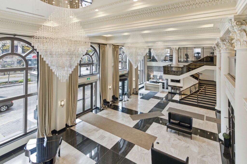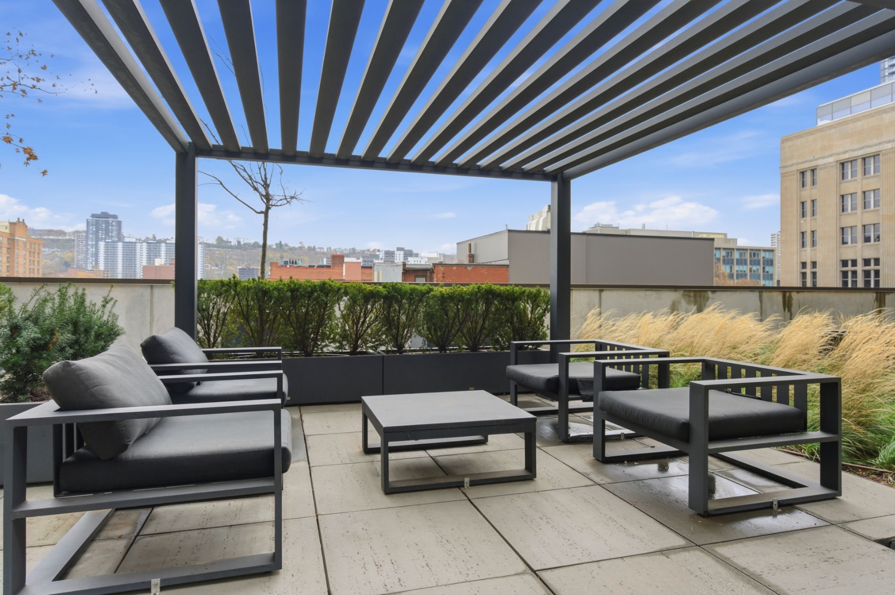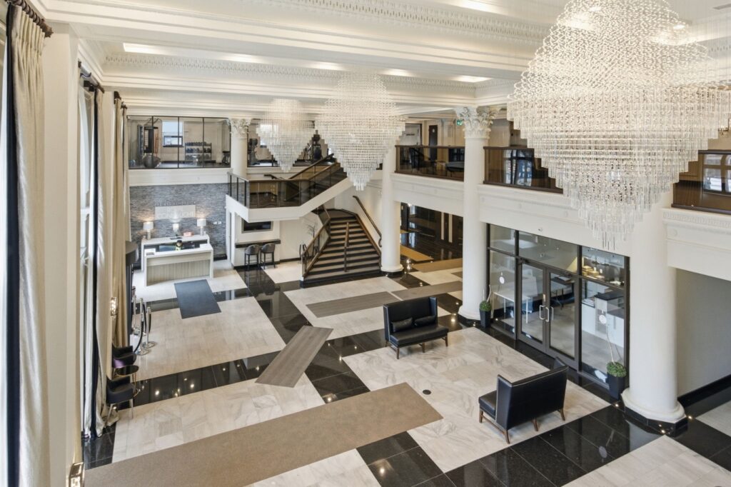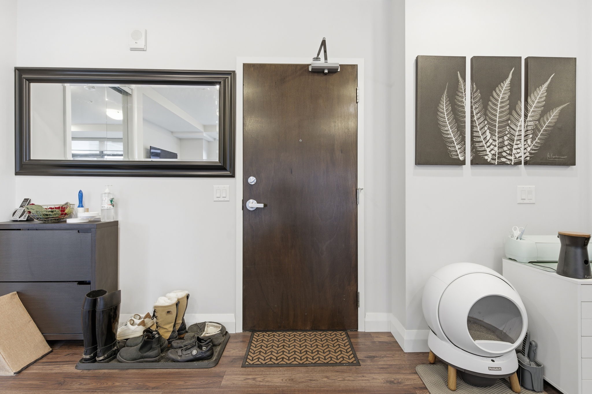 Bright, refined, and effortlessly contemporary – Suite 916 at the iconic Royal Connaught, a beautifully preserved piece of Hamilton’s history in the heart of downtown, offers an exceptional standard of urban living. This nearly 900 sq. ft 1-bedroom + den residence features 9′ ceilings and expansive floor to ceiling windows that span the full width of the suite, immersing the home in natural light and framing sweeping southeast views of the courtyard, city skyline, and escarpment. Showcasing one of the building’s most desirable layouts, the suite includes extra height kitchen cabinetry with lower pull-outs, granite countertops, pot lights, solar-charged motorized blinds, and a walk-in closet with custom organizers. The bathroom has also been beautifully upgraded with granite counters and premium porcelain tile. Thoughtful enhancements throughout elevate both comfort and style. The spacious open den provides exceptional versatility – ideal as a home office, guest room, or potential second bedroom. Residents enjoy access to outstanding amenities, including a rooftop terrace perfect for sunsets and summer evenings, concierge service, a fully equipped fitness centre, media room and elegant party room. This unit also comes with an owned locker and an underground parking spot. Step outside and you’re moments from Hamilton’s finest cafes, shops, art galleries, and restaurants, along with the vibrant energy of James Street. Hospital services, transit and GO station connections are all within easy reach. If you’re seeking a seamless blend of luxury, history, and urban convenience, this spectacular suite at the Royal Connaught might just be your perfect match.