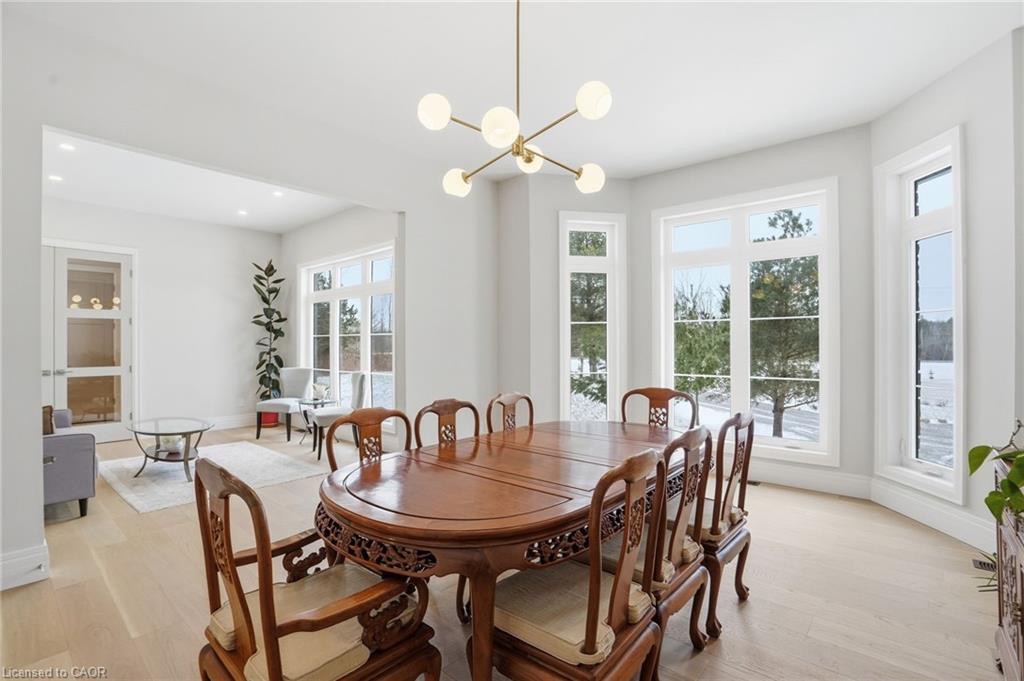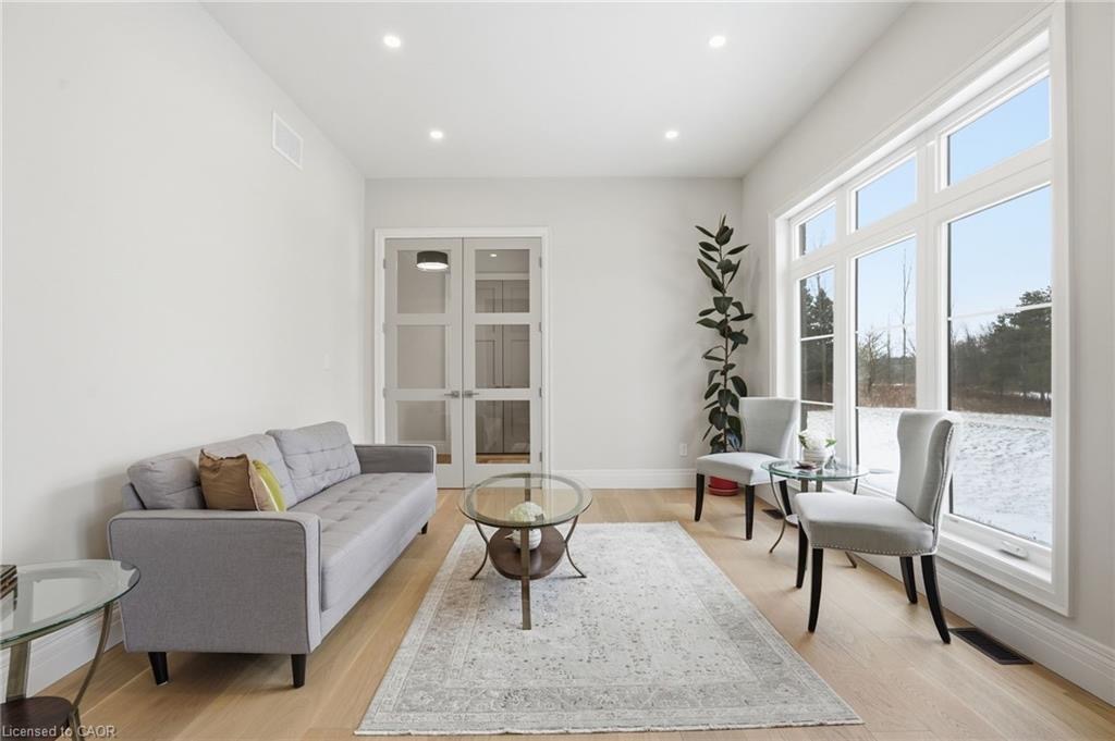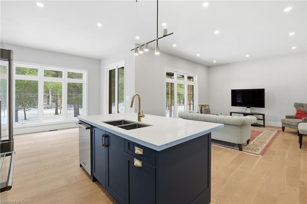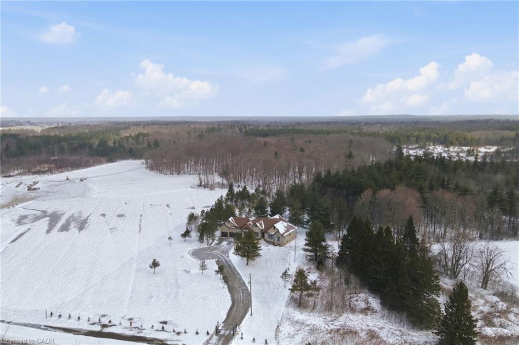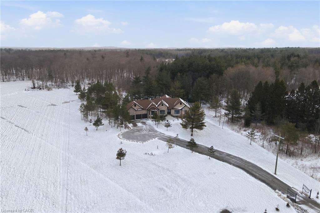 Indulge in elevated living, exceptional 2024 built estate offering over 5,500 sqft of exquisitely crafted space. An impressive 2,767 sqft per level, set on a private 2.37 acre lot with over 200 mature trees, backing onto forested conservation land. Designed with sophistication & scale, the open-concept interior showcases soaring 10′ ceilings on the main level & 9′ ceilings below, paired with expansive windows that flood the home with natural light. Stunning 7″ engineered white oak flooring runs throughout, complemented by custom 8′ solid core doors & exquisite trim work. 126 integrated pot lights provide a warm, ambient glow throughout the home. The show stopping chef’s kitchen features floor-to-ceiling custom cabinetry, a statement center island, quartz countertops, built-in appliances, along with a walk in pantry that enhances both functionality. Four of the six generously appointed bedrooms offer private, spa-inspired ensuites, delivering exceptional comfort & privacy. The fully finished lower level mirrors the elegance & footprint of the main floor, creating a completely self-contained residence with a separate entrance & full in-law suite. Built with performance & efficiency in mind, the home features a 6-tonne heat pump system, supported by a 100,000 BTU furnace for optimal comfort during extreme temperatures. The 40′ drilled well services the home, complete with UV filtration, water purifier & softener systems, along with a 9,000-litre, 3-chamber septic system with alarm for added peace of mind. A substantial 80,000 lb certified recycled asphalt driveway leads to the oversized 3-car garage with extra-high ceilings. Perfectly positioned between Rockton and Sheffield, this Luxury Certified residence is a rare offering—seamlessly blending modern design, advanced infrastructure, and the tranquility of nature.