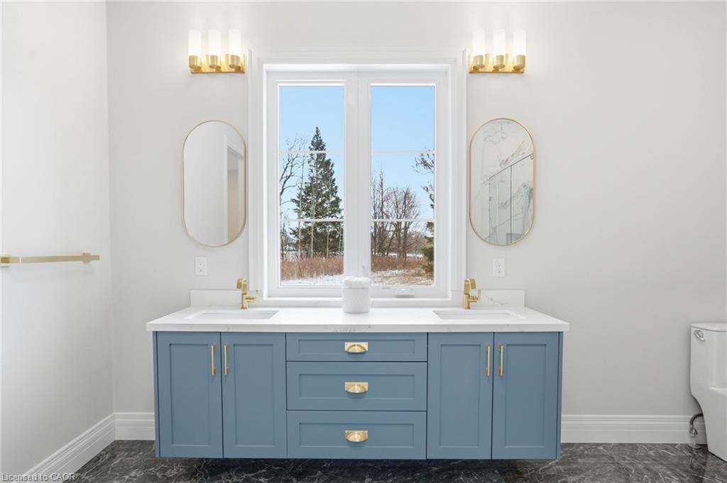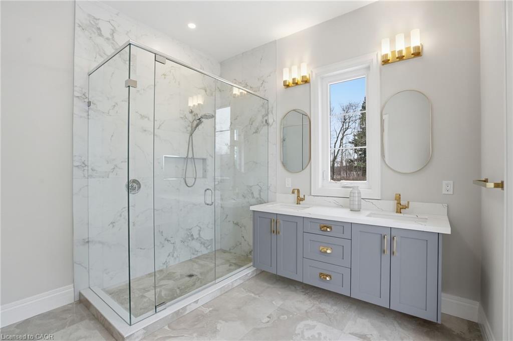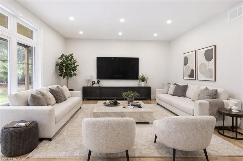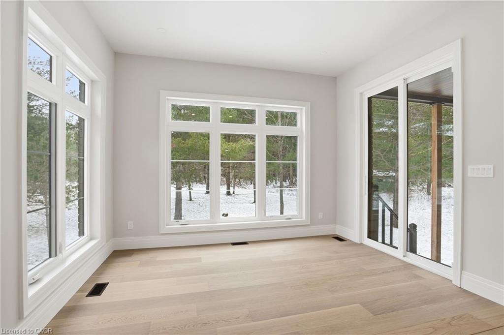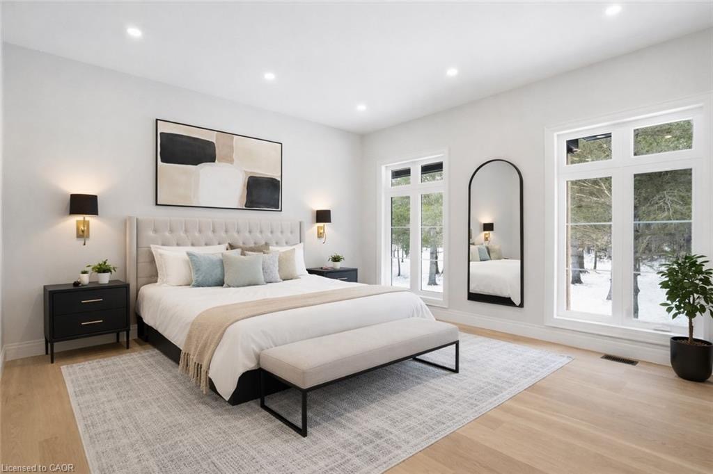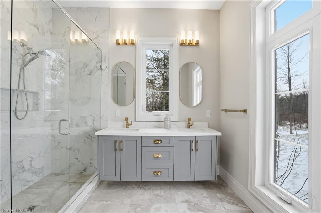 Indulge in elevated living, exceptional 2024 built estate offering over 5,500 sqft of exquisitely crafted space. An impressive 2,767 sqft per level, set on a private 2.37 acre lot with over 200 mature trees, backing onto forested conservation land. Designed with sophistication & scale, the open-concept interior showcases soaring 10′ ceilings on the main level & 9′ ceilings below, paired with expansive windows that flood the home with natural light. Stunning 7″ engineered white oak flooring runs throughout, complemented by custom 8′ solid core doors & exquisite trim work. 126 integrated pot lights provide a warm, ambient glow throughout the home. The show stopping chef’s kitchen features floor-to-ceiling custom cabinetry, a statement center island, quartz countertops, built-in appliances, along with a walk in pantry that enhances both functionality. Four of the six generously appointed bedrooms offer private, spa-inspired ensuites, delivering exceptional comfort & privacy. The fully finished lower level mirrors the elegance & footprint of the main floor, creating a completely self-contained residence with a separate entrance & full in-law suite. Built with performance & efficiency in mind, the home features a 6-tonne heat pump system, supported by a 100,000 BTU furnace for optimal comfort during extreme temperatures. The 40′ drilled well services the home, complete with UV filtration, water purifier & softener systems, along with a 9,000-litre, 3-chamber septic system with alarm for added peace of mind. A substantial 80,000 lb certified recycled asphalt driveway leads to the oversized 3-car garage with extra-high ceilings. Perfectly positioned between Rockton and Sheffield, this Luxury Certified residence is a rare offering—seamlessly blending modern design, advanced infrastructure, and the tranquility of nature.